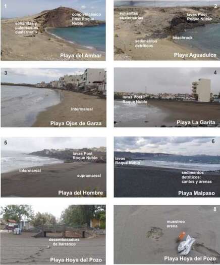 Con estos datos se pueden detectar similitudes y diferencias tanto de los parámetros granulométricos (tamaño de grano y su distribución) como del contenido en carbonatos en los subambientes intermareal y supramareal de las doce playas seleccionadas, que de norte a sur son: Bocabarranco (Jinamar), Malpaso, San Borondón, Los Palos, La Garita, Hoya del Pozo, El Hombre, Melenara, Salinetas, Aguadulce, Ojos de Garza y Ámbar (Península de Gando).