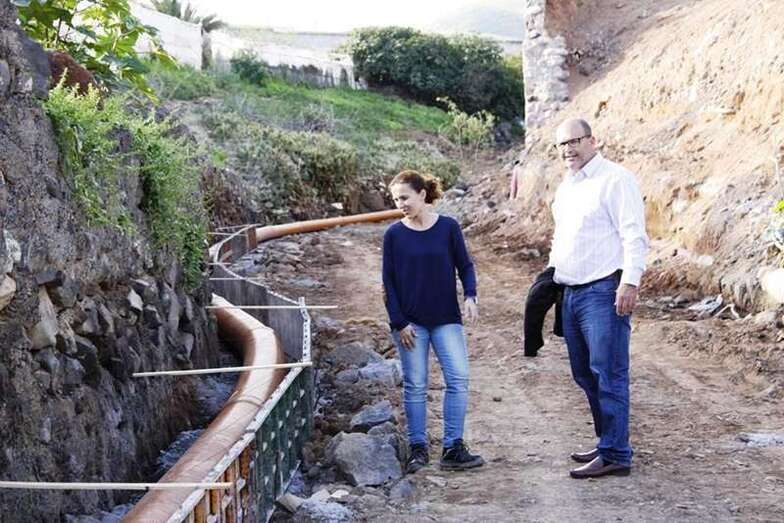 Asimismo, se está procediendo a sustituir cerca de 400 metros lineales de tubería de 300 milímetros de diámetro en el barranco de Lomo Cementerio que se dañaron a causa del derrumbe de varios muros.