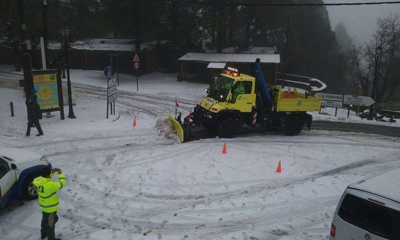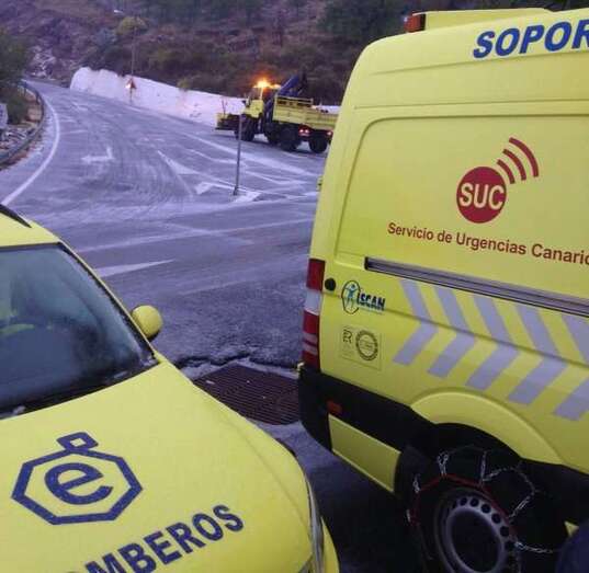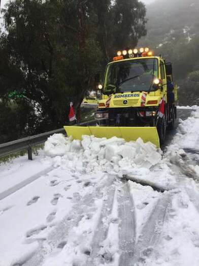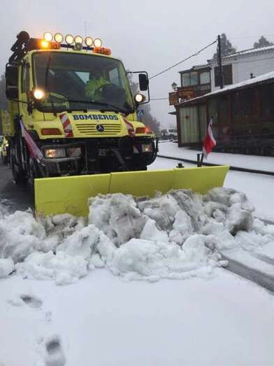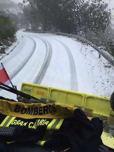 Los bomberos del Consorcio de Emergencias de Gran Canaria han desplazado un vehículo quitanieves que participa en un operativo prioritario para garantizar el acceso a los vecinos de la cumbre y a los militares y personal de AENA, que quedaron aislados desde ayer.