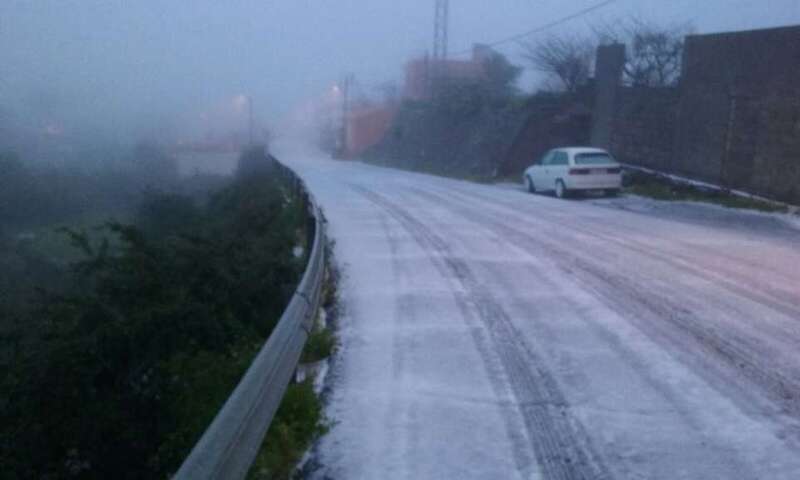 Telde.-  La cumbre grancanaria amaneció este viernes totalmente cubierta de nieve. Las temperaturas rozan los 0 grados y las carreteras de acceso permanecen cortadas. Las que están abiertas son bastante peligrosas al estar llenas de hielo, por lo que se recomienda no transitar por las mismas bajo ningún concepto. Sigue lloviendo y granizando.