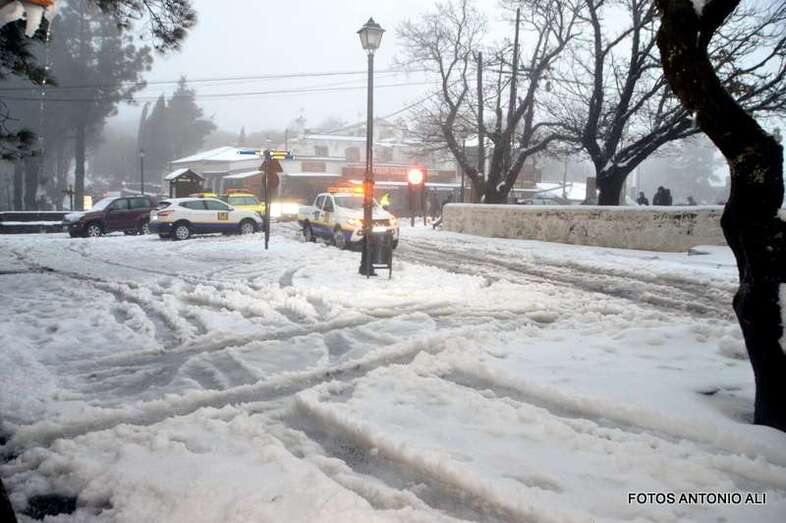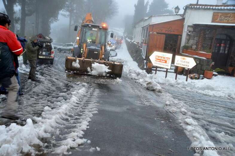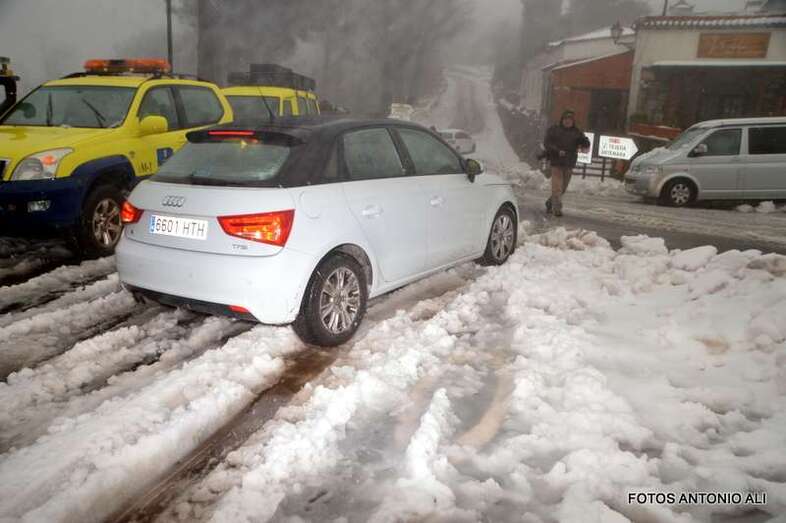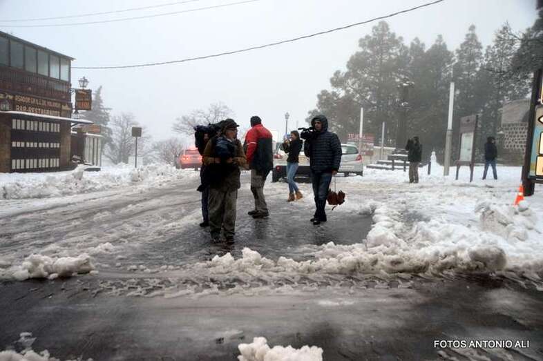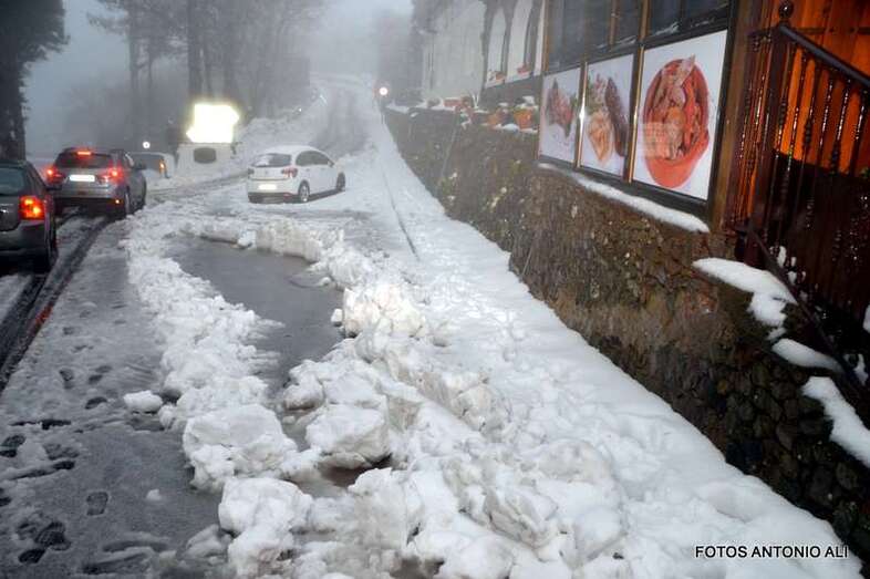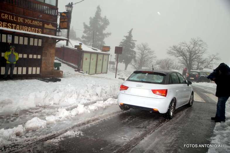 La afluencia de público a la cumbre dificultó el paso del camión quitanieves, necesario para el operativo de desplegado en la zona que, con carácter prioritario, ha organizado el acceso de los vecinos, militares y personal de AENA.