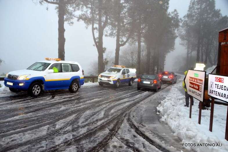 La nieve, el granizo y la lluvia persisten en la cumbre de Gran Canaria. Los accesos están complementa cerrados ante el riesgo que supone circular con el asfalto helado y con nieve que bloquea algunos tramos. El Cabildo mantiene la prohibición de acceder e insiste en que se respeten las medidas aplicadas para restringir el acceso a la zona, ya que las placas de hielo pueden hacer patinar a los coches, con riesgos de salida de la calzada, y provocar accidentes, bloqueando así los recursos de emergencia. Una petición a la que a últimas horas de este viernes también se sumaba el Gobierno de Canarias a través de la Dirección General de Seguridad y Emergencias (DGSE).