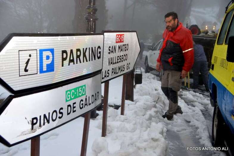 Una comitiva que partió del cruce de Cueva Grande y Las Lagunetas hacia la Cruz de Tejeda. Allí, con una temperatura de menos de 1 grado centígrado, se encuentra desplegado un amplio dispositivo de emergencias compuesto por más de 300 efectivos. Operarios de todos los servicios del Cabildo y otras instituciones, como policías locales, Guardias Civil, Policía Canaria, Carreteras, Medioambiente, bomberos y Protección Civil, entre otros.