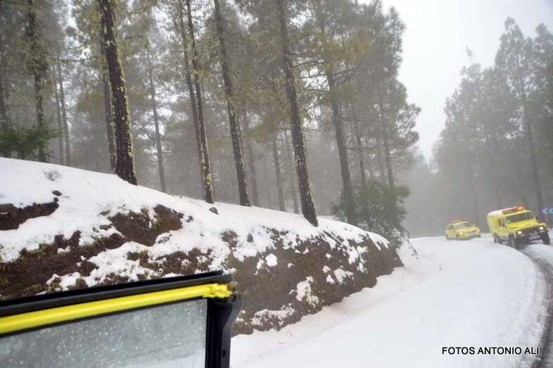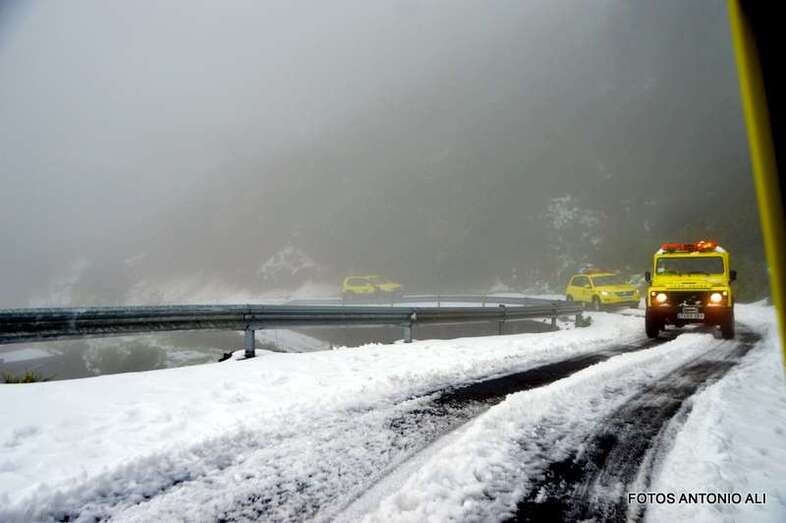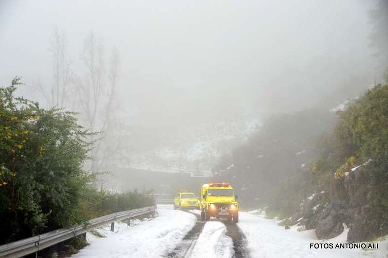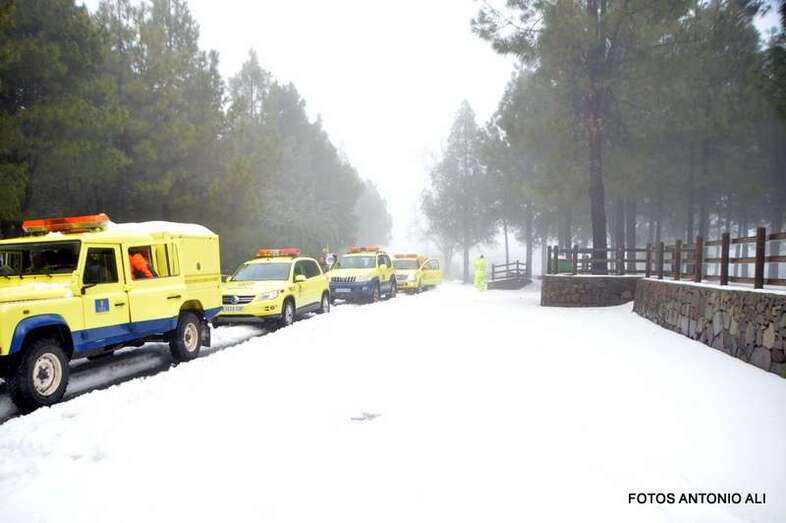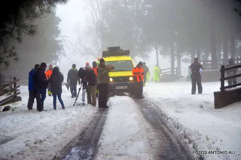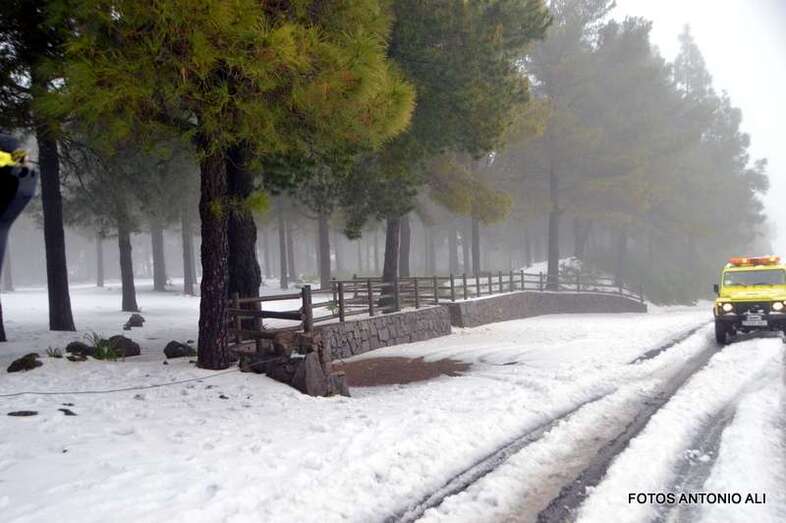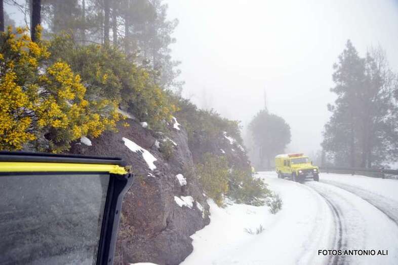 Telde.- El Cabildo de Gran Canaria informó este sábado de que sigue prohibido el acceso a la cumbre y a sus zonas recreativas por la helada que afecta a las carreteras de la zona, en las que conducir vehículos es peligrosa, según resaltó el consejero insular de Emergencias, Juan Manuel Brito durante la visita que giró este mediodía al sector del Pico de Las Nieves con un grupo de periodistas y reporteros gráficos, entre ellos el colaborador de TA, Antonio Alí.