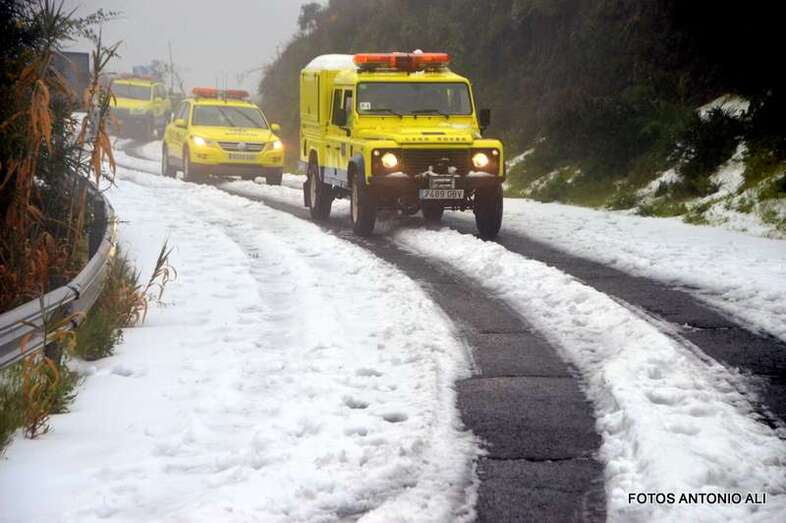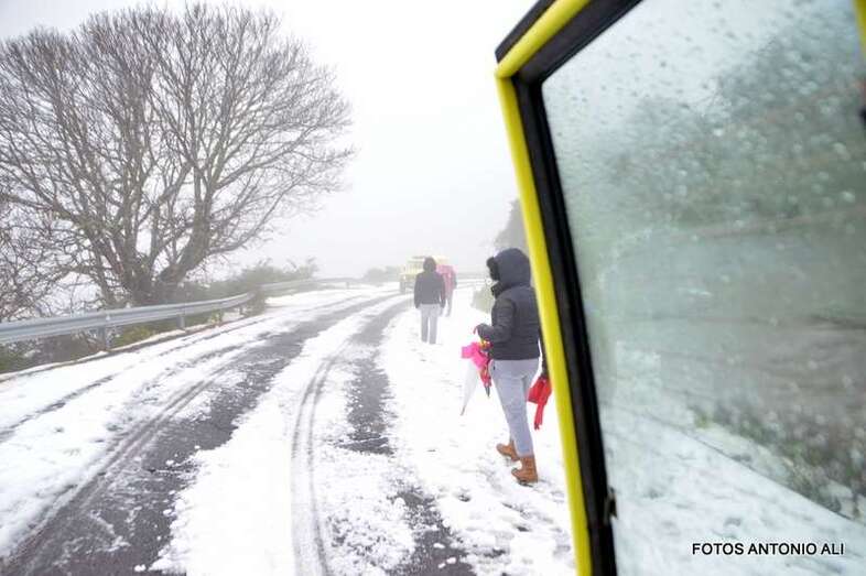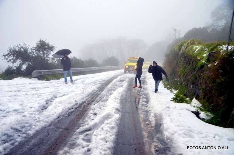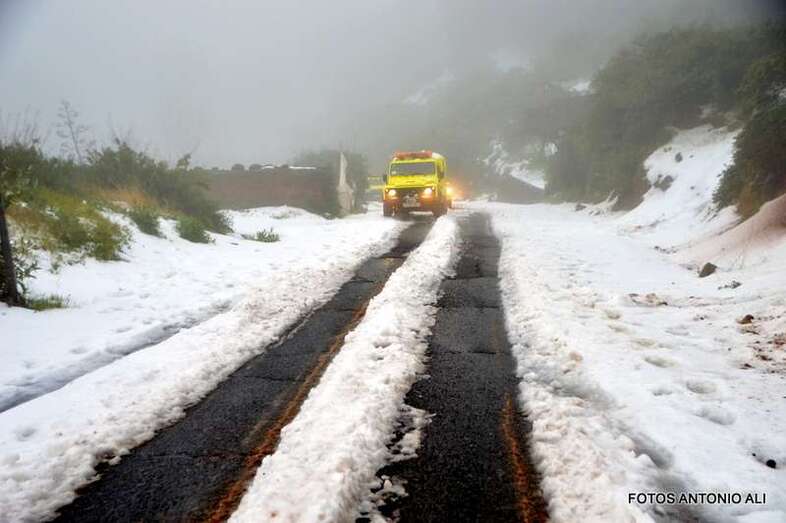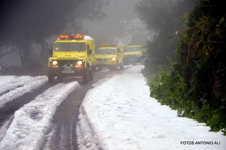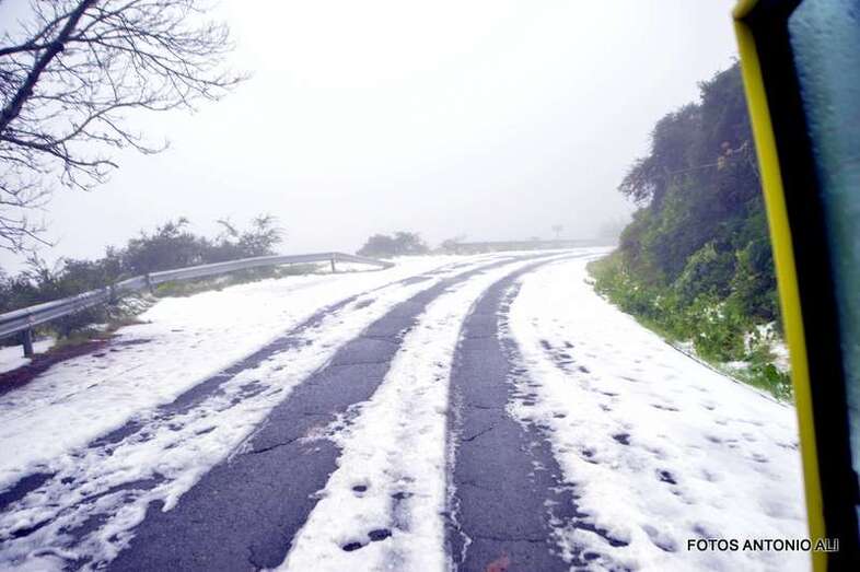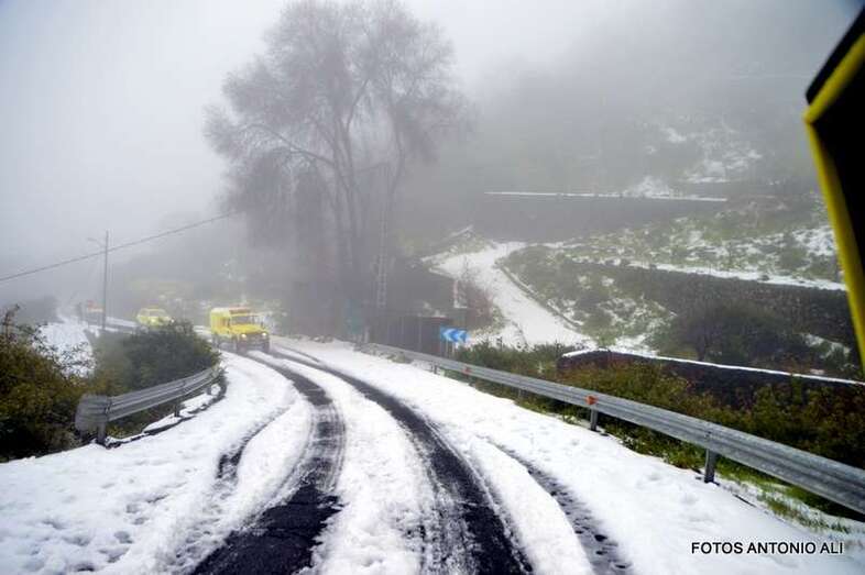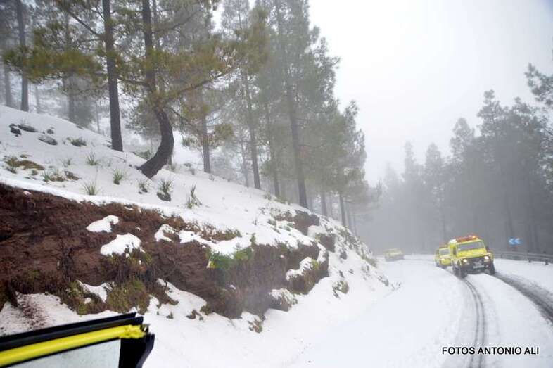 Telde.- El Cabildo de Gran Canaria informó este sábado de que sigue prohibido el acceso a la cumbre y a sus zonas recreativas por la helada que afecta a las carreteras de la zona, en las que conducir vehículos es peligrosa, según resaltó el consejero insular de Emergencias, Juan Manuel Brito durante la visita que giró este mediodía al sector del Pico de Las Nieves con un grupo de periodistas y reporteros gráficos, entre ellos el colaborador de TA, Antonio Alí.