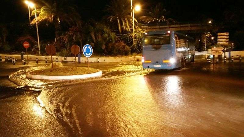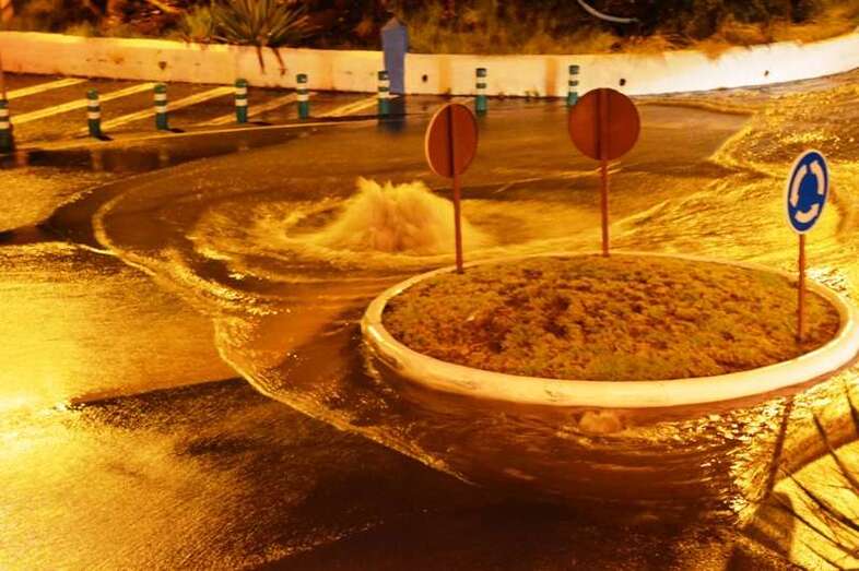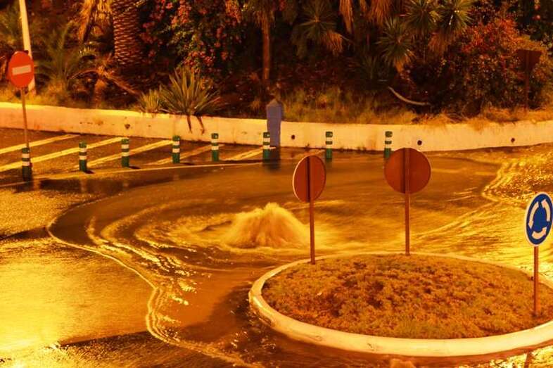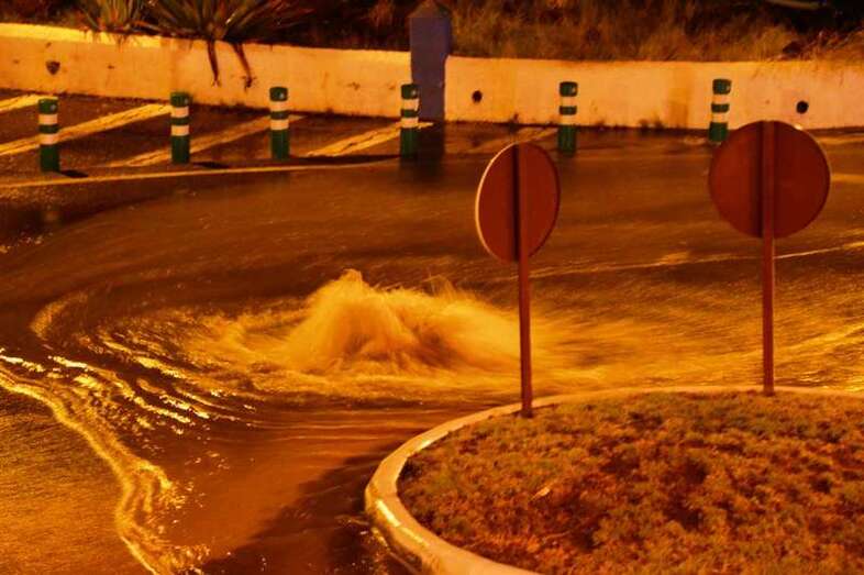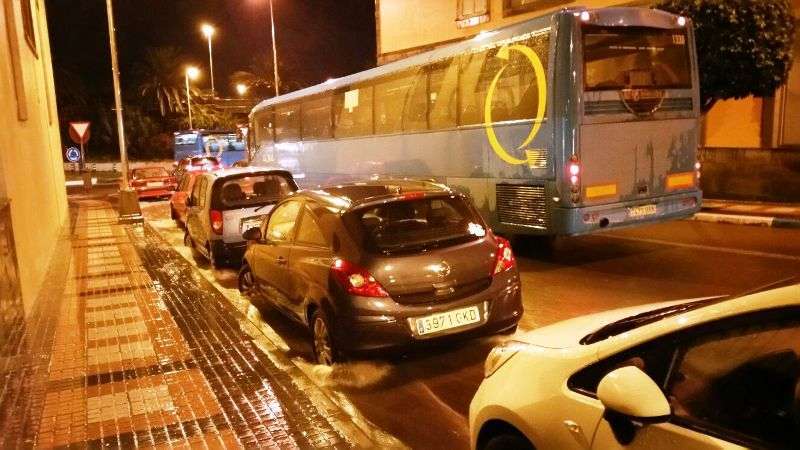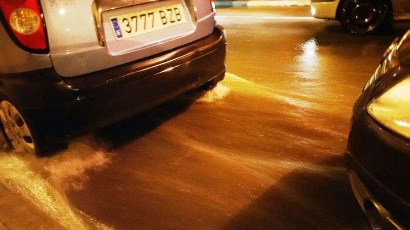 Telde.- Una tromba de agua provocó esta noche en Telde, al filo de las 22.00 horas, el desbordamiento de la red de alcantarillado en varios puntos del municipio y la formación de grandes charcos de agua en las vías que dificultaron por momento la circulación de los vehículos.
