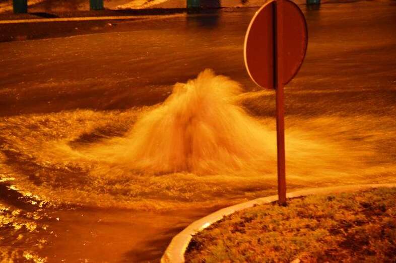 La tromba causó también el desbordamiento de la red de saneamiento en varios puntos del entramado viario de la ciudad. En algunos sitios, la fuerza del agua levantó incluso el asfalto.