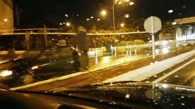 El aguacero duró apenas unos 15 minutos, acompañado de truenos y relámpagos, pero fue de tal intensidad que las vías públicas se convirtieron en una escorrentía que formó grandes charcos debajo de los puentes y en tramos de algunas carreteras que forzaron a la Policía Local a tener que cerrar al tráfico la salida hacia la GC-1 desde la Avenida del Cabildo, frente al núcleo de Las Remudas. Los agentes auxiliaron también a varios conductores que sus vehículos se pararon en medio de las lagunas, como pudo comprobar in situ TELDEACTUALIDAD bajo el puente de la autopista sobre la Avenida del Cabildo.
