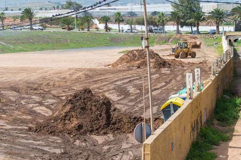 Telde.- Nunca es tarde si la dicha es buena. Eso deben haber pensado los vecinos de Melenara que viven en las inmediaciones del antiguo campo de fútbol al ver hoy un tractor municipal retirando la tierra acumulada en el antiguo campo de fútbol desde las trombas de agua del pasado mes de octubre de 2015. TA avanza imágenes de los trabajos.