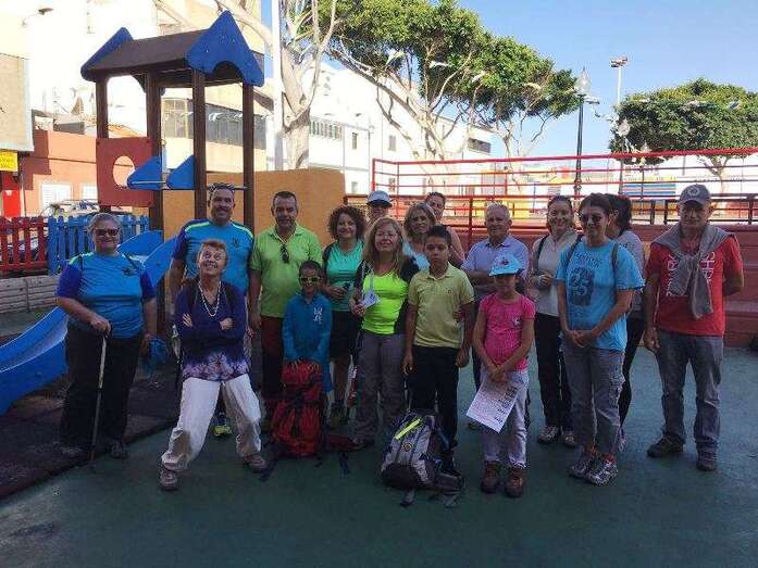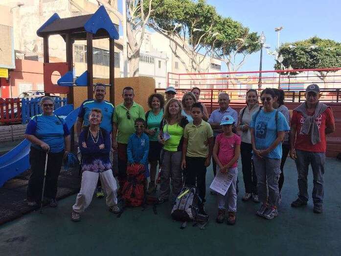 Los participantes en esta ruta, que se concentraron en la plaza de Marpequeña al filo de las 9.00 horas, aportaron un kilo de comida para su reparto entre las familias menos favorecidas de este barrio teldense.