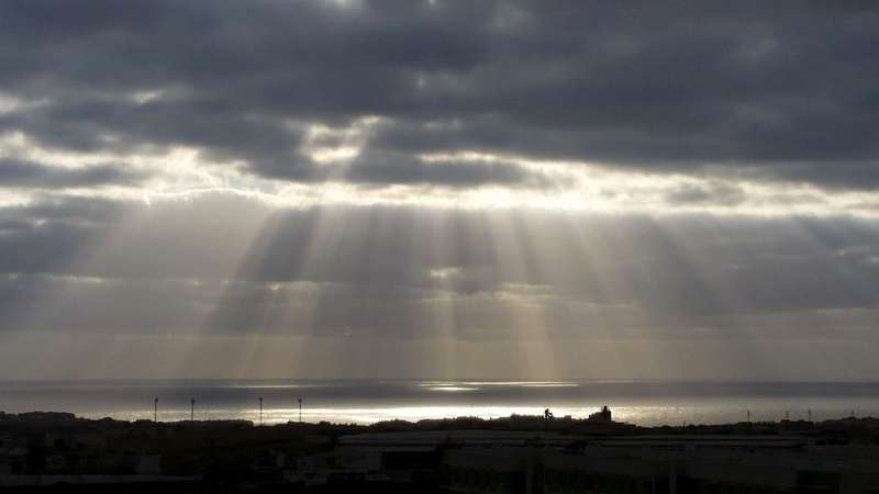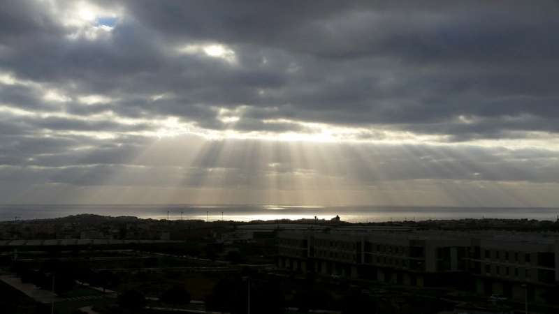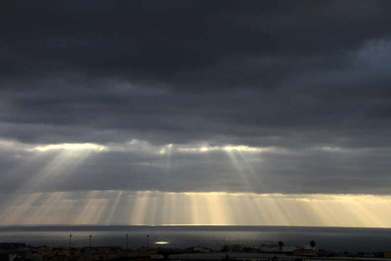 Telde.- La naturaleza dejó en la jornada de este lunes una bella estampa en Telde. Unos rayos de luz abriéndose camino entre un grupo de nubes bajas frente al litoral del municipio. Un fenómeno que el colaborador Jesús Ruiz captó con su cámara fotográfica y que sirvió como inspiración de un relato que comparte con los lectores de TELDEACTUALIDAD.