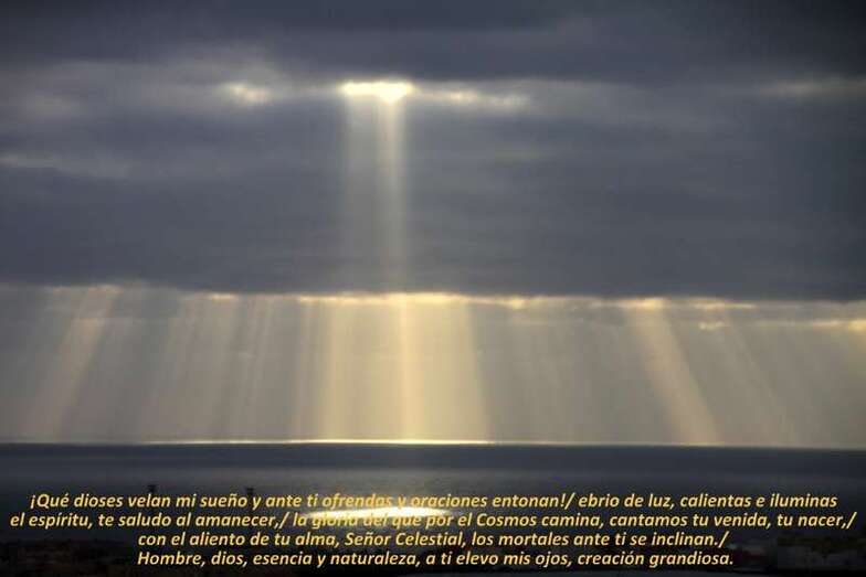 Y el sol se alzaba lento en su deambular por el cosmos dejando una estela de luz que atravesando los espacios nebulosos de las cercanas nubes plomizas frente a los acantilados y calas arenosas bañadas por las tranquilas aguas del litoral teldense, con las mareas del octubre atlántico que por el calendario transcurre, y en el horizonte el húmedo alisio regresa de refrescar la nocturnidad escondida de la Maxorata vecina.