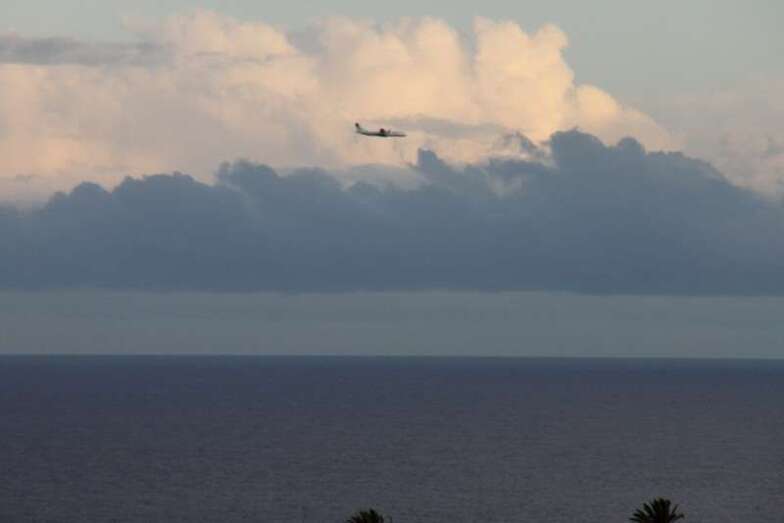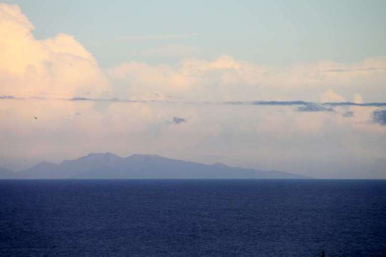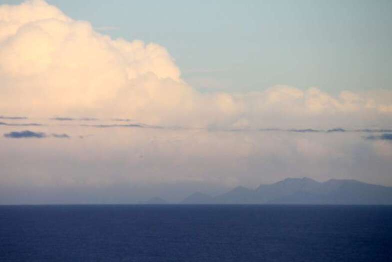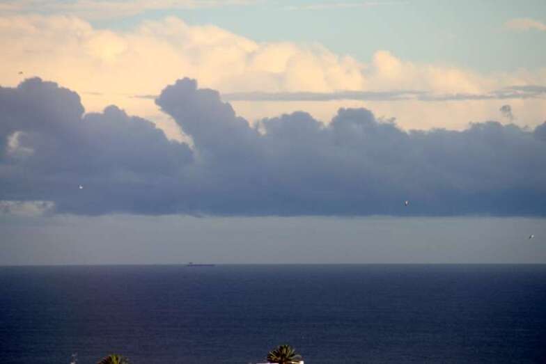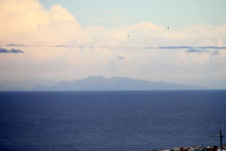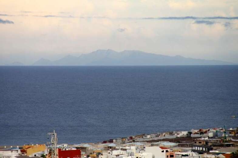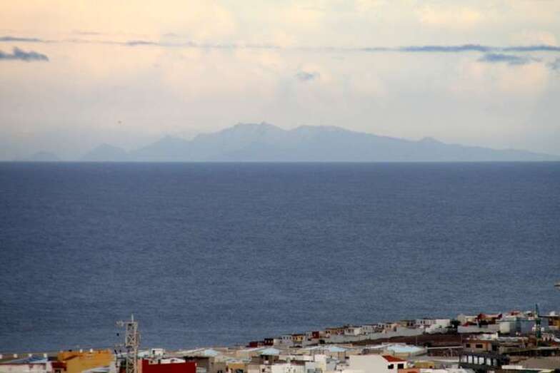 Solamente mirar al cielo, bien parapetados, seguros, observar y disfrutar, …y en la lejanía al alcance del objetivo, enfoque, disparo de la digital y con buen aire, libre de contaminación, limpio, casi al completo de visibilidad,…..en la línea del horizonte al alcance de la mano, Fuerteventura, y ya sabemos los canarios…agua segura, ¡vaya si lo es!