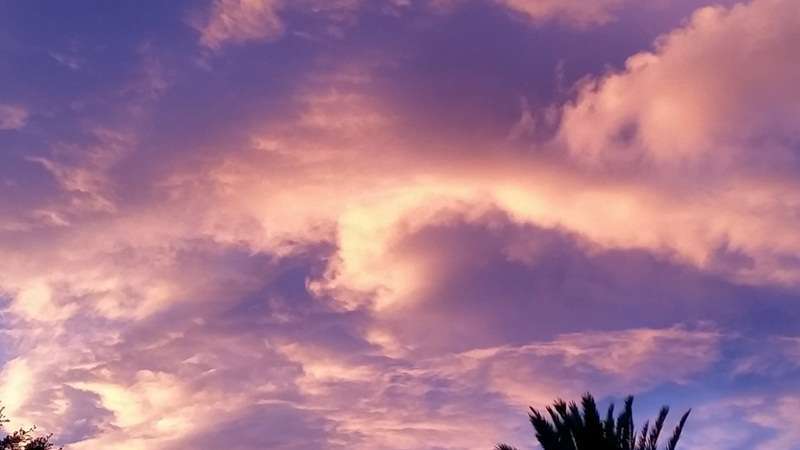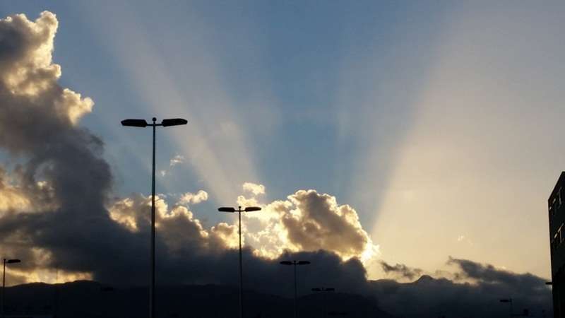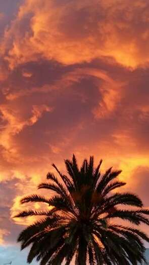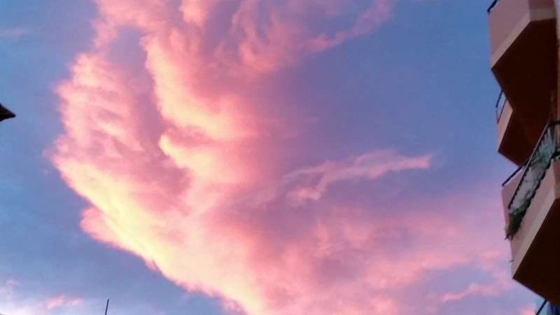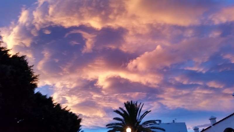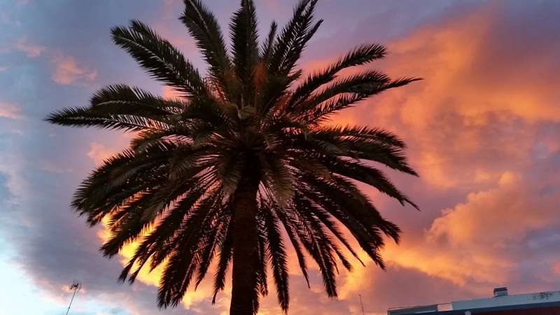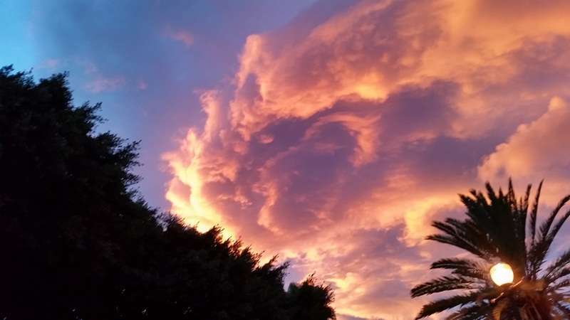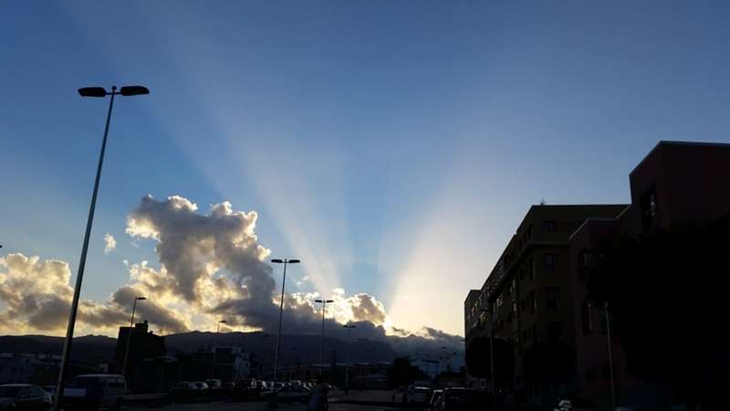Pero ocurre que ocasionado por el efecto tanto climatológico como de características naturales fruto de la propia física de la naturaleza y de nuestro viaje en torno a la órbita solar, las estaciones se suceden y nos ofrecen en nuestra eterna primavera atlántica efectos cromáticos que se originan y diluyen sobre nuestro paisaje, pinceladas de anónimas manos inspiradas por invisibles musas que como el mejor o la mejor de las artistas, sobre el mar, sobre las cumbres o las ciudades, nos sirven cuadros naturales de una originalidad y belleza extraordinaria, preciosos crepúsculos arrebolados que desde el alba hasta el ocaso nos atraen sus extrañas, a veces, formas de proceder y manifestarse la naturaleza y dejarnos extasiados al contemplar sus efectos.