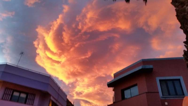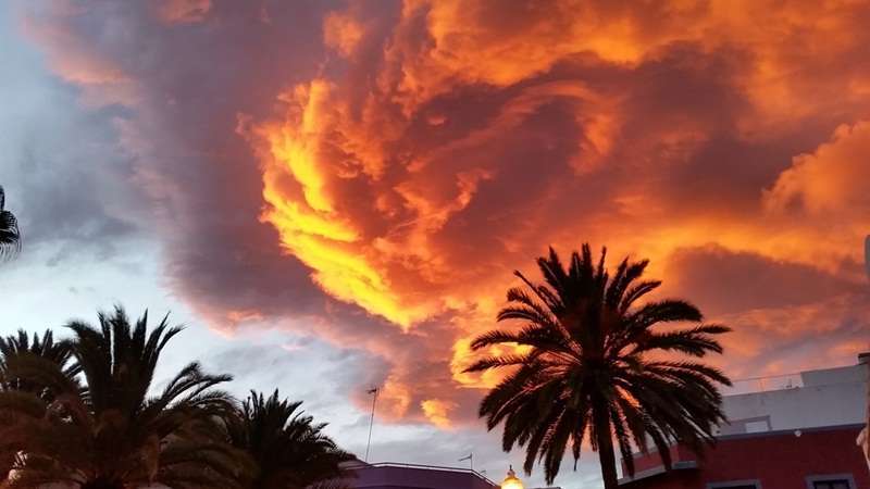 Telde.- La de ayer fue una tarde única. La borrasca 'Elizabeth' pintó ese inmenso lienzo que supone el cielo con unas tonalidades rojizas y cuasi apocalípticas que llamaron la atención de propios y extraños. Muchos fueron los que sacaron su cámara y apuntaron hacia lo alto para inmortalizar estampas la mar de llamativas.