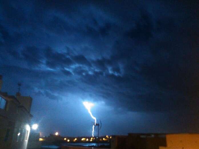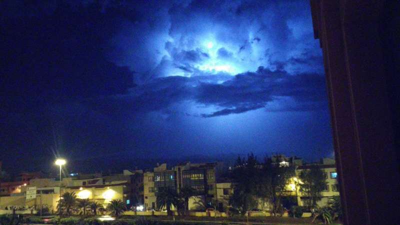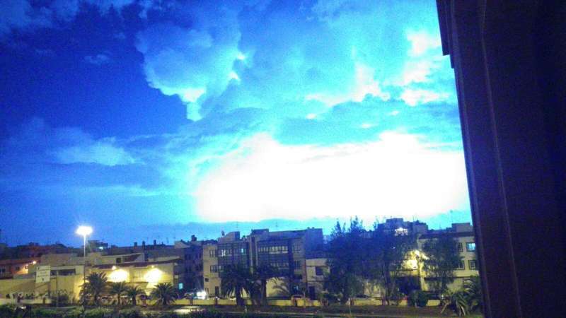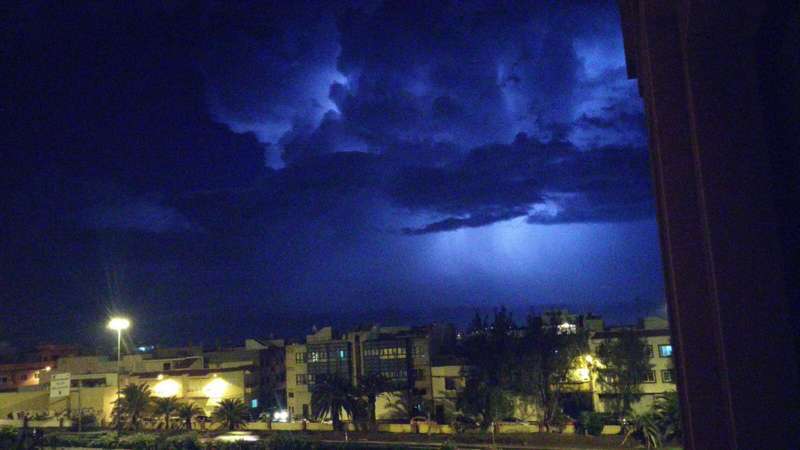Telde.- Parecía que la borrasca Elisabeth había abandonado por completo Canarias, pero no. Un bombardeo de rayos, truenos y relámpagos ilumina desde algo más de media hora el cielo de Telde, lo que hace presagiar un empeoramiento de las condiciones meteorológicas en las próximas horas. La mayor parte de las descargas eléctricas se registran en la costa del municipio, sobre el mar, aunque poco a poco se aproximan a tierra.
