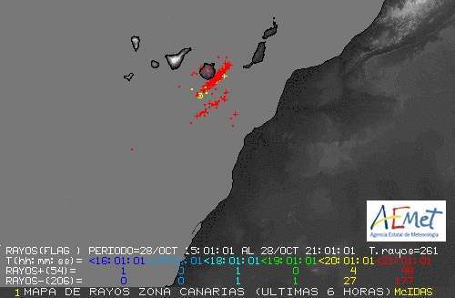 Las descargas eléctricas se han sucedido con estrecho margen. En las últimas seis horas, la Agencia Estatal de Meteorología ha contabilizado 315 rayos en Canarias, la mayor parte en pleno mar en la zona este y sureste de Gran Canaria.