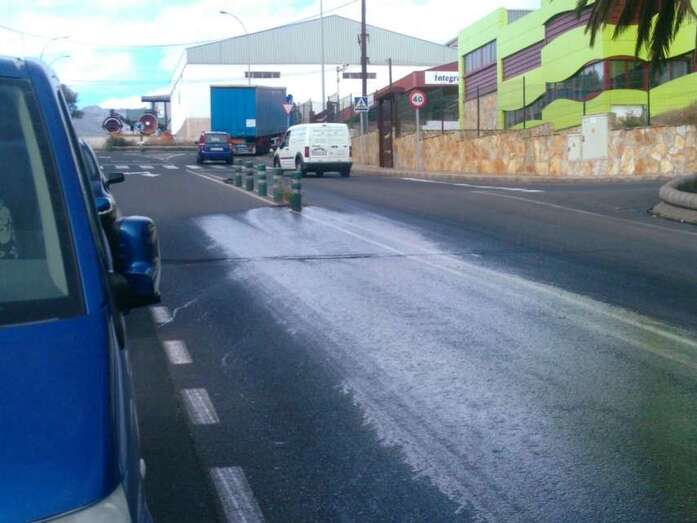 Telde.- Un vertido en la parte baja de calle de Bosque, principal vía de acceso al polígono industrial de El Gorto, ha provocado varios accidentes. Por ahora se desconoce el origen del derrame que procede, según fuentes de la Policía Local, de una arqueta de la red de saneamiento ubicada en esta vía.