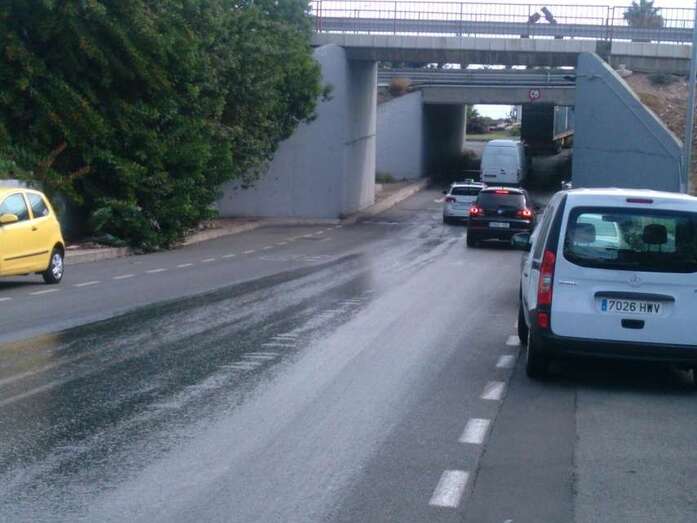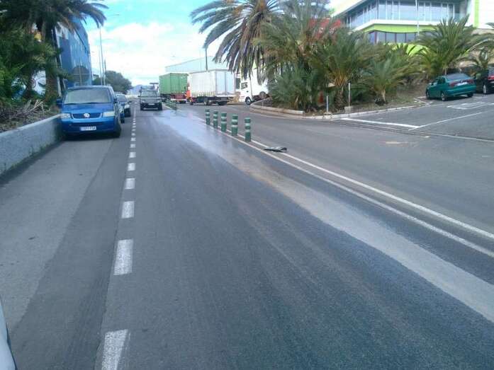 Por su parte, fuentes de la Policía Local precisaron que el líquido resbaladizo causó varios accidentes. En uno de ellos un motorista resultó herido y fue evacuado en ambulancia del SUC.