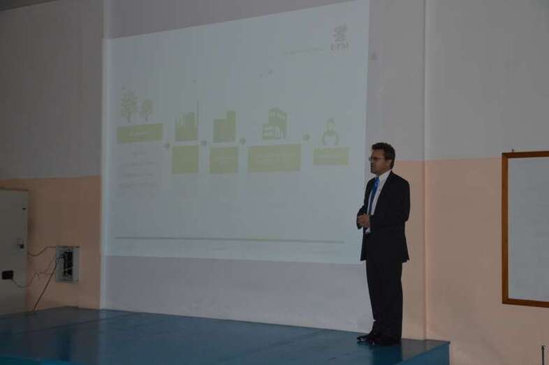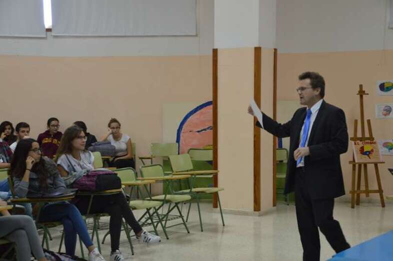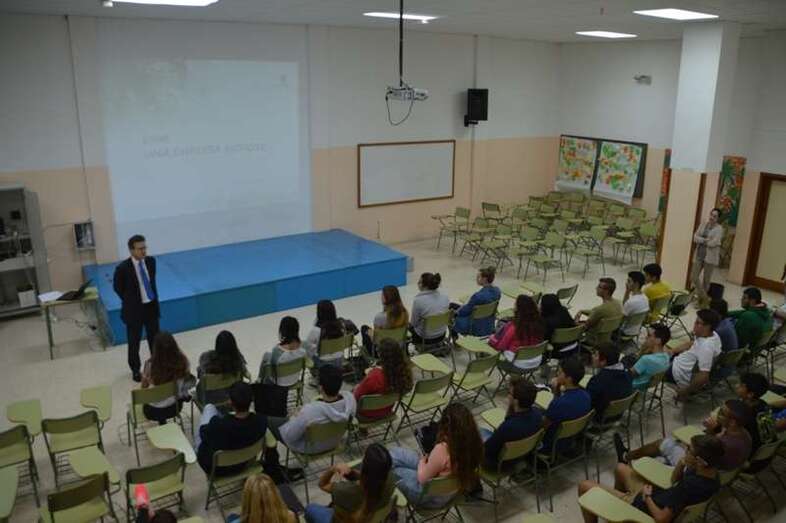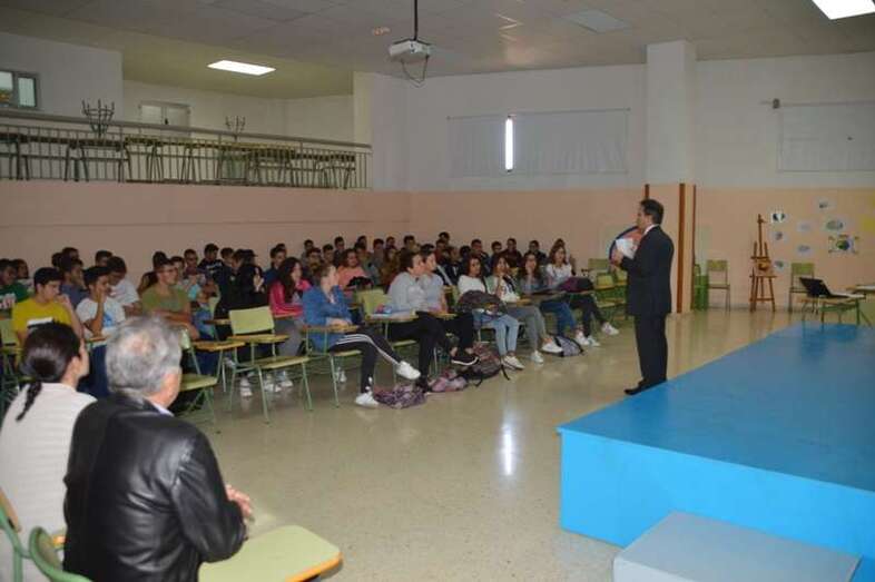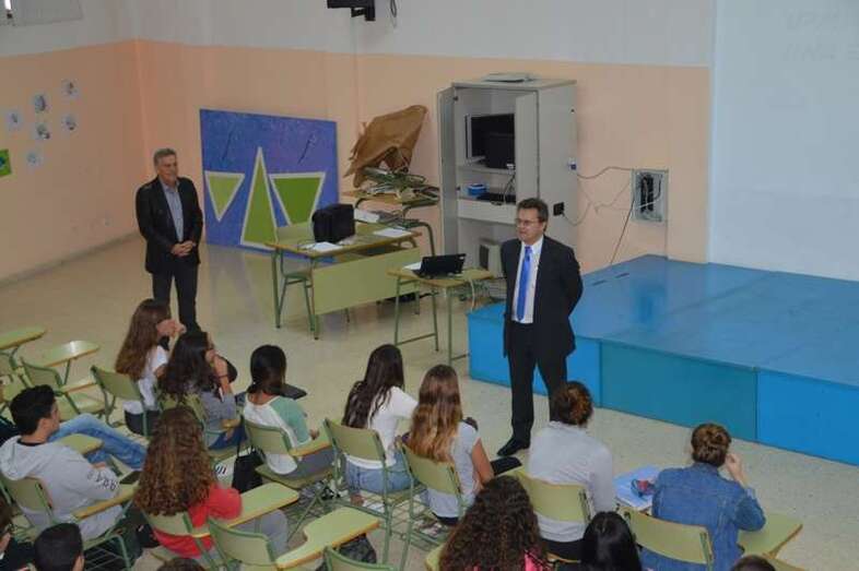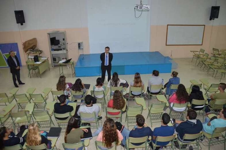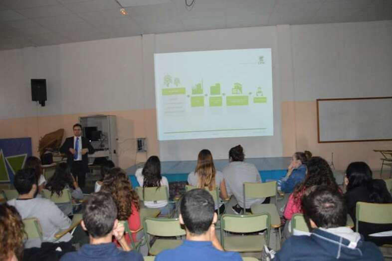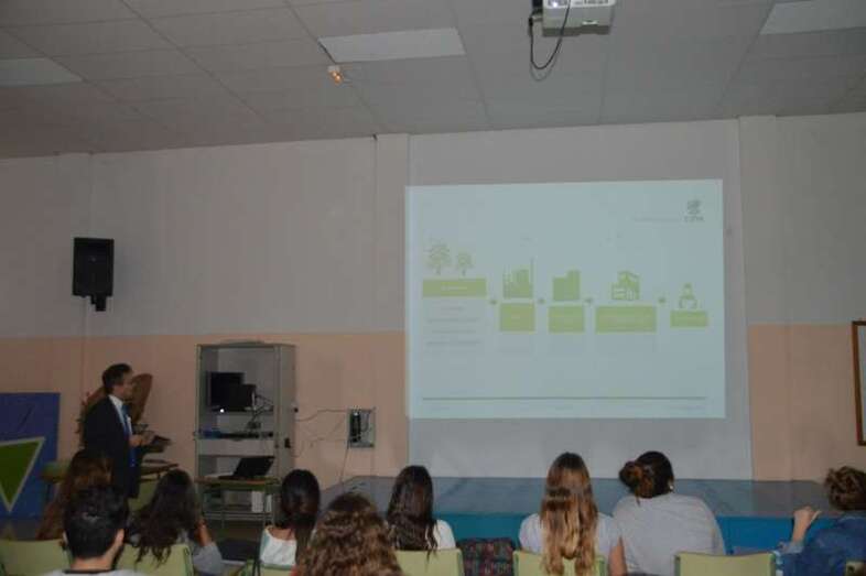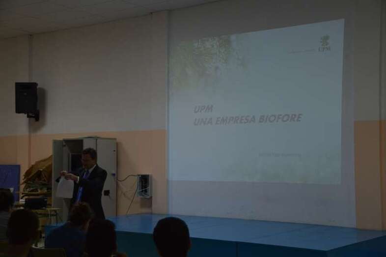 La charla del directivo de UPM se enmarcó en las actividades programadas por la coordinadora de Sostenibilidad del IES Casas Nuevas, Gema Betancor, profesor de Biología, quien agradeció al ponente su disertación y a Basilio Melián, titular de Papelería Telli, presente en el acto, los trámites para que la conferencia fuera una realidad.