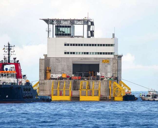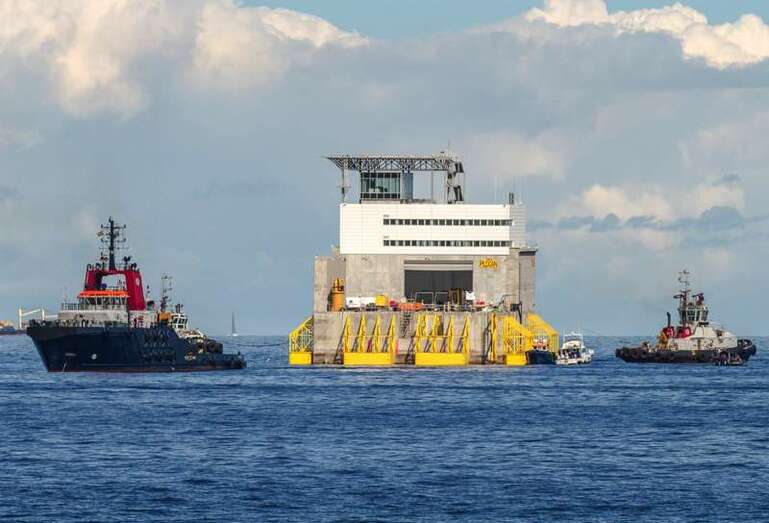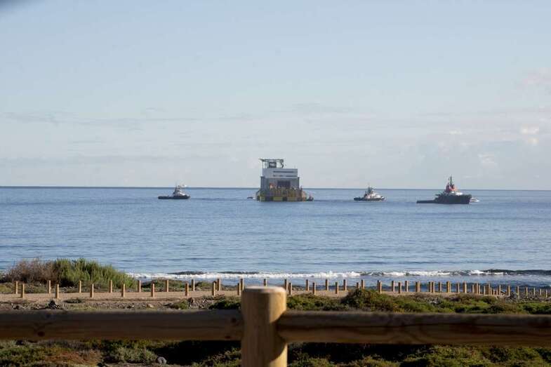 A medio día, sobre las 12.00 horas de este jueves, empezarán las tareas de lastrado y amarre de la plataforma. Con 60 metros de altura y coronada con un helipuerto, se sumergirá unos 37 metros hasta descansar sobre el lecho marino. Allí quedará fijada y conectada a tierra por medio de un entramado de cables e infraestructuras eléctricas que garantizarán las comunicaciones submarinas y la evacuación de energía desde los diferentes dispositivos que se prueben en altar mar.