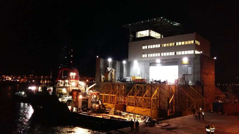 La delicada y precisa maniobra está sujeta en gran medida a las condiciones de la mar, y sus responsables la han demorado hasta tener la certeza de poder disponer de una ventana con condiciones meteorológicas favorables. El traslado se inició sobre las 22.30 horas. Cuatro remolcadores de la flota de Boluda comenzaron a desplazar de esta mole de 33 metros por 35 y cuyo peso ronda las 32.000 toneladas, 8.000 de ellas de hormigón.