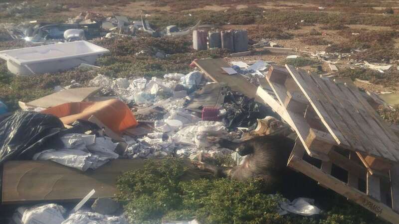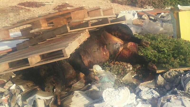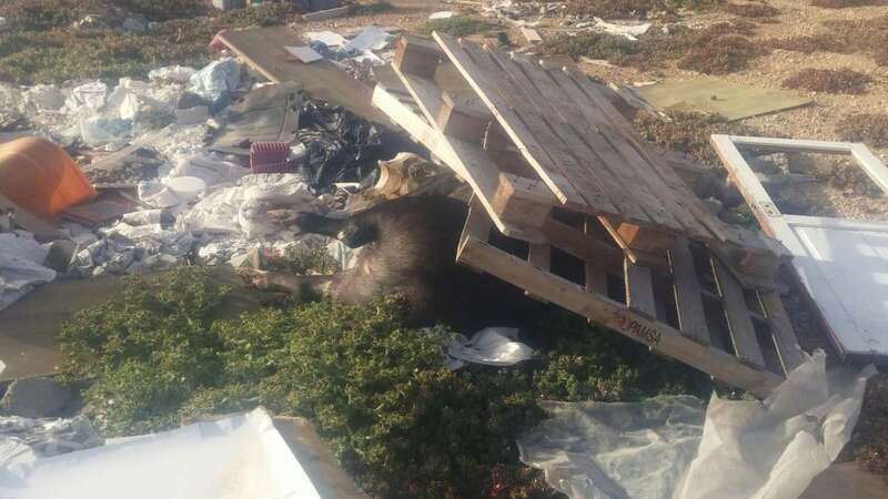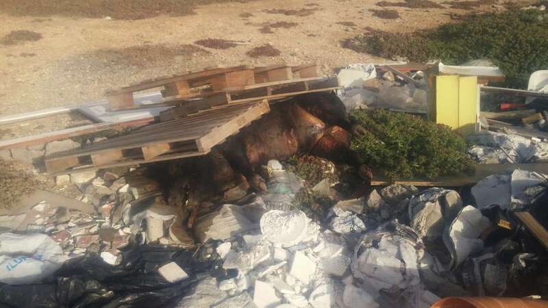 Telde.- Un cochino de unos cientos de kilos yace muerto bajo unos pares apilados junto a sacos de basura, escombros y restos de lo que fueron una puerta, una bañera y hasta un bidé.