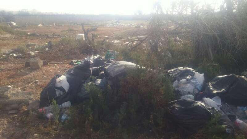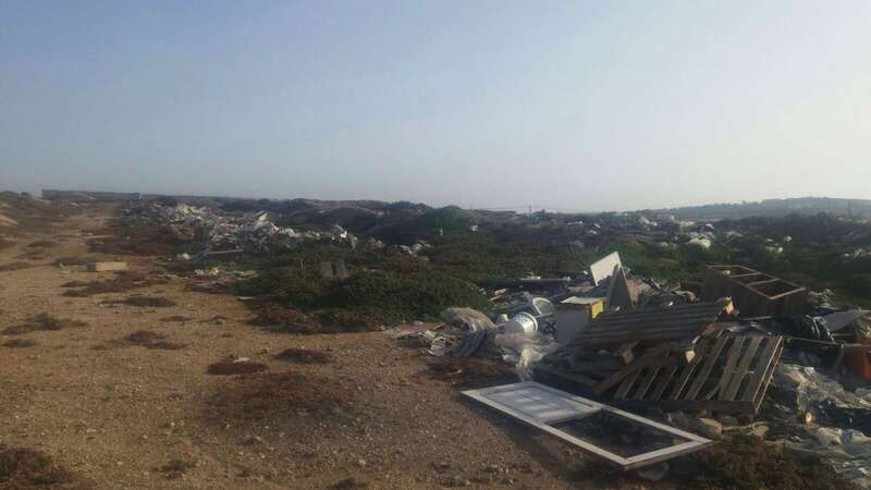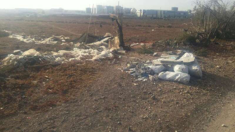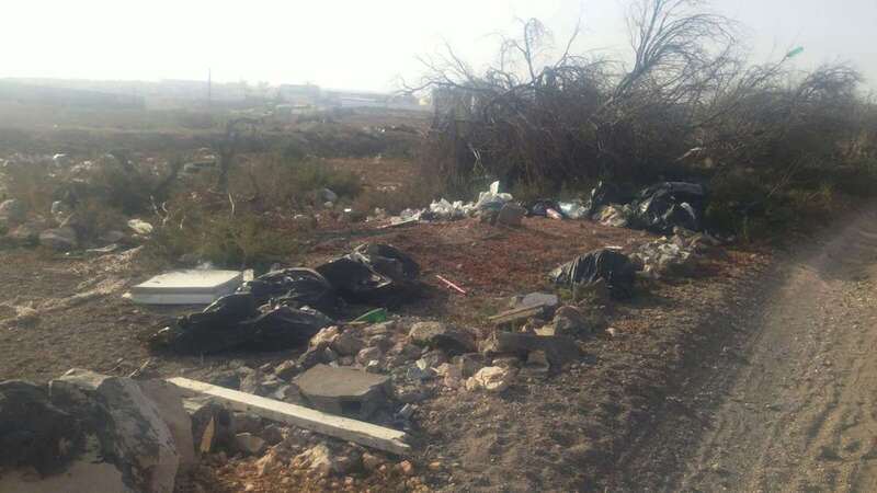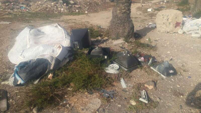 No muy lejos de allí, al pie de unas palmeras, partes diseccionadas de televisores y otros dispositivos electrónicos no pasan para nada desapercibidos entre la vegetación y los plásticos que hace no muchos años cubrieron un invernadero. También hay muebles, botellas de vidrio, bidones con un líquido indeterminado o neumáticos.