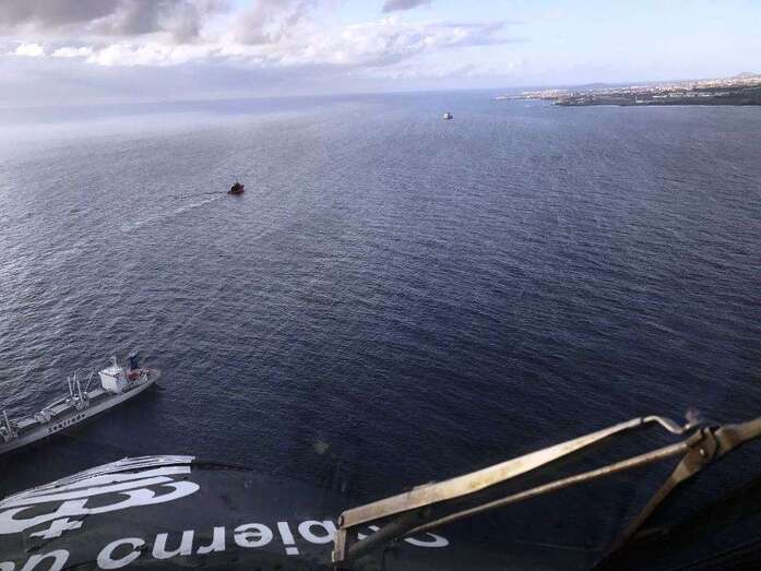 Según ha informado la Institución insular, el resto del vertido más próximo a la costa se encuentra a 1 kilómetro, según la inspección que realizó a primeras horas el helicóptero del Gobierno de Canarias, que ha especificado que la mancha tiene una extensión de unos 8,5 millas -13,6 kilómetros-.