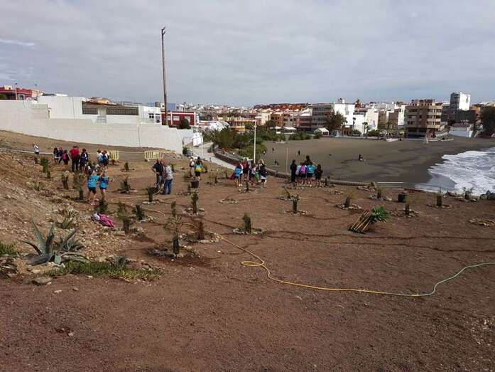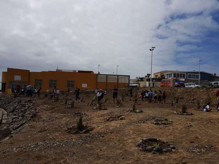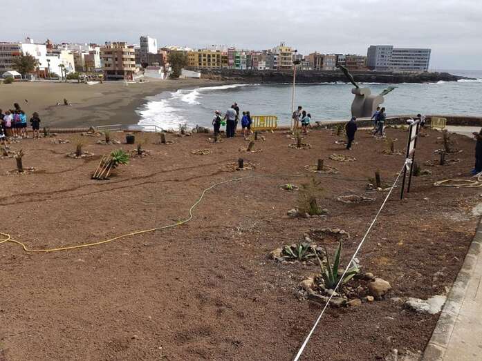 Los pequeños realizaron un taller sobre los residuos que se acumulan en las playas (colillas, recipientes, etc.) y visitaron la plantación el pasado año, en el marco de esta celebración, llevaron a cabo junto al local de la Asociación Vecinal Punto y Seguido de La Garita.