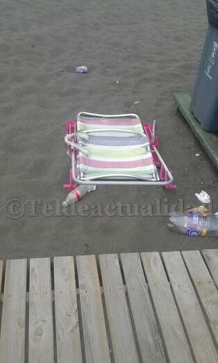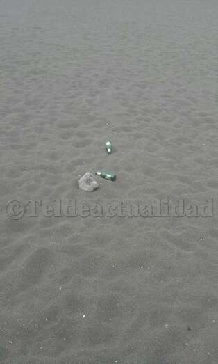 La falta de civismo se ha puesto una vez más de manifiesto este fin de semana en esta cala teldense. Restos de sombrillas, botellas de plástico y de vidrio, vasos, latas y un sinfín de residuos adornan la que es la playa más popular del municipio, que en la jornada de este sábado registro una gran afluencia de usuarios debido a las altas temperaturas y a que era día festivo en la capital y en Telde.