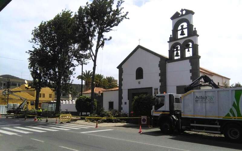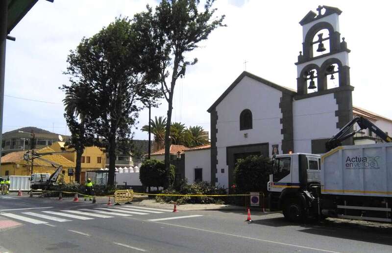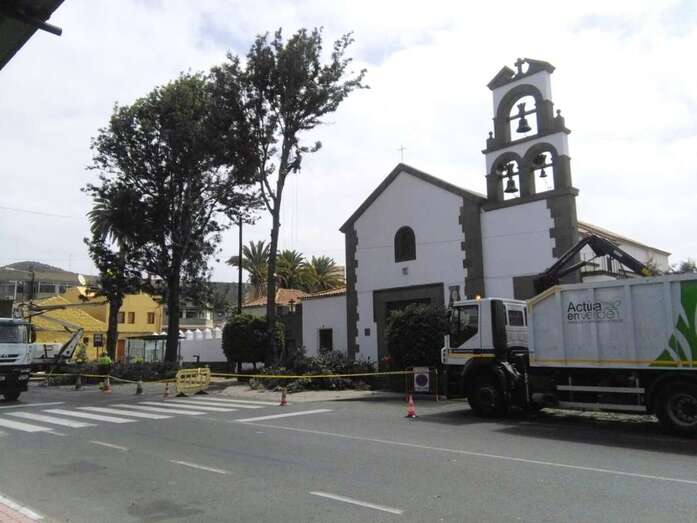 Telde.- La Concejalía de Parques y Jardines del Ayuntamiento de Telde ha iniciado este miércoles una actuación de choque para talar los árboles que se encuentran junto a la Iglesia de Jinámar, después de que en la tarde de ayer una rama de gran tamaño cayera sobre ocho personas y les provocara lesiones leves.