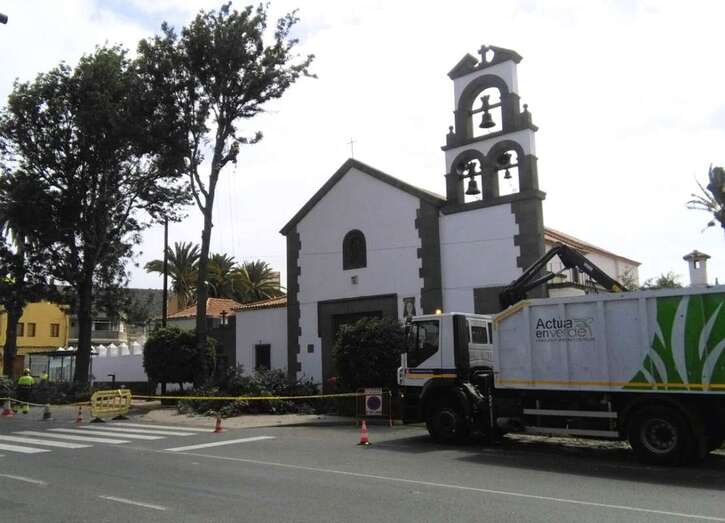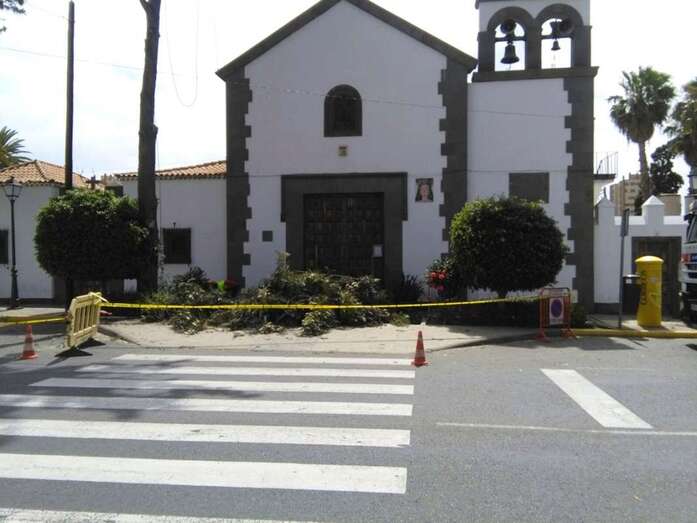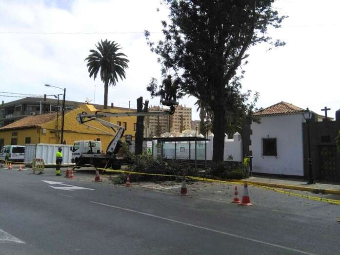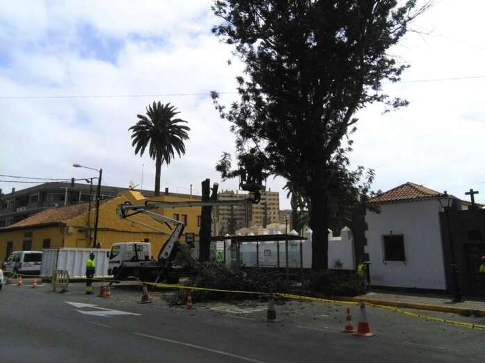 El departamento municipal que dirige el concejal Abraham Santana (NC), también responsable de este Distrito de la ciudad, ha decidido cortar por lo sano y desmochar los cuatro ejemplares de grandes dimensiones, viejos y podridos en su interior, que se levantan sobre los pequeños parterres situados junto al templo de La Concepción, al pie de la carretera principal (GC-100) que atraviesa el casco del pueblo de Jinámar.