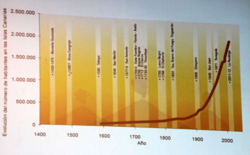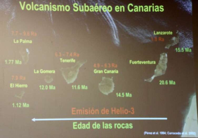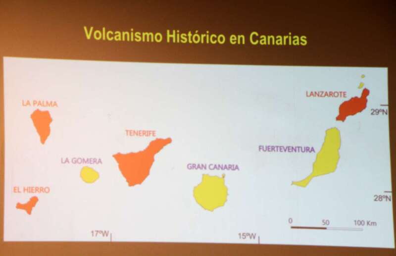 En la tercera jornada del jueves 6, en una interesante exposición y recorrido por la geografía volcánica de Canarias, se da a conocer en una primera observación la razón del fenómeno volcánico de Canarias, el Volcanismo Subaéreo y el Histórico de Canarias. Imágenes que explican con claridad el desarrollo de los acontecimientos de material emergente desde el abismo oceánico de una primera fase de creación archipielágica, desde un punto caliente que asciende desde la astenosfera a 100 kms de profundidad hasta la litosfera, en un proceso que según las islas cubre un espacio de 20 millones de años en el caso de Fuerteventura hasta las recientes, según edades geológicas, 1.12 millones de años en el caso de El Hierro. Gran Canaria tiene una edad de 14.5 Ma y Tenerife 11.6 Ma.