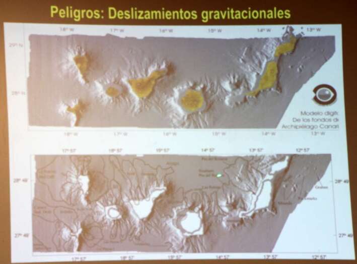 El ejemplo de la erupción del volcán Teneguía en la isla de La Palma, ocurrida en octubre y noviembre de 1971. Existe una sismicidad que se concentra entre la isla de Gran Canaria y la de Tenerife causada por la existencia de un volcán submarino ligado a una tectónica procedente de una fractura procedente del Atlas que llega hasta el mar, que origina el llamado Volcán Hijo de Tenerife o del Medio, en el límite del edificio insular de Tenerife aunque se apoya sobre Gran Canaria.