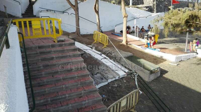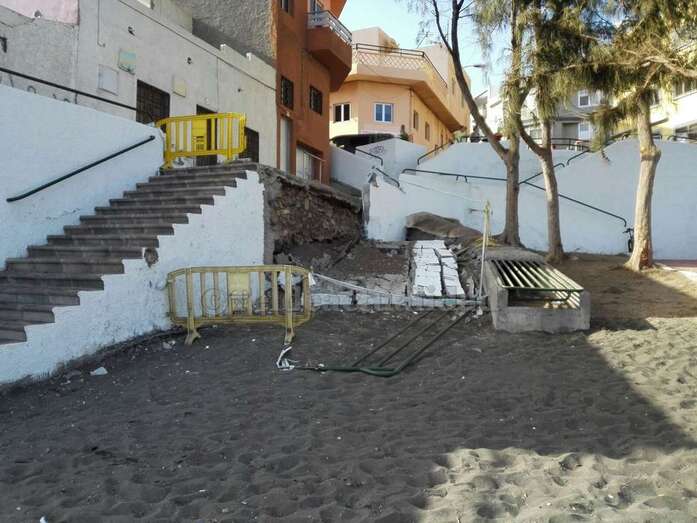Telde.- Un muro del acceso a la playa de La Garita desde el Paseo de Las Delicias se vino abajo este martes y los vecinos aseguran que constituye un serio peligro para la integridad física de las personas que transiten por la zona.