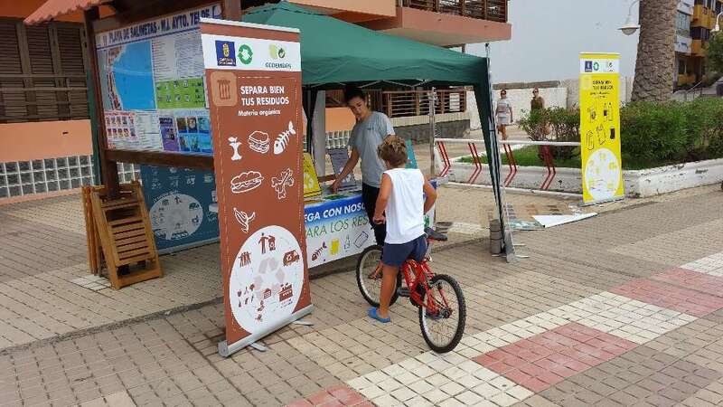 Telde.- La campaña de educación ambiental Gran Canaria Recicla aterriza este sábado en la playa teldense de Salinetas, donde dos monitores en el stand de reciclaje itinerante muestran a los residentes y usuarios la correcta gestión de los residuos.