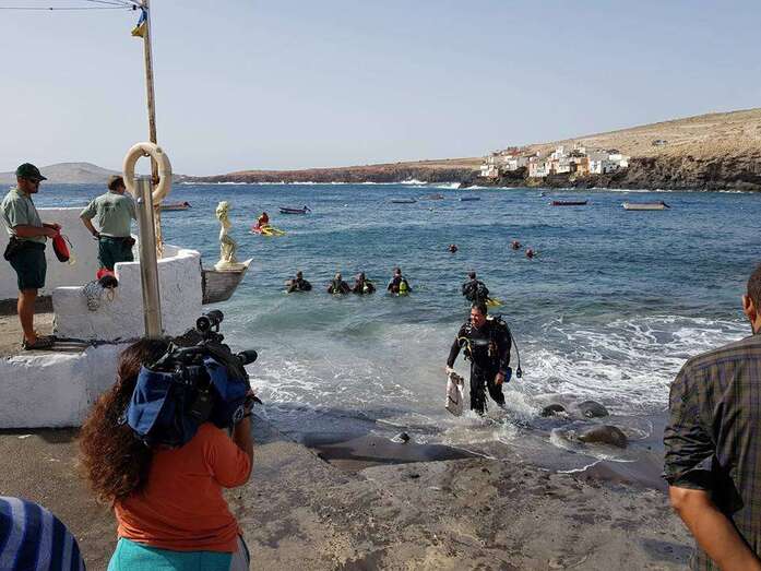 La intervención impulsada por la Concejalía de Medio Ambiente, al frente de la que está el concejal nacionalista Abraham Santana (NC), y la comisión de fiestas de Tufia, contó con la participación de buceadores del CB Gran Azul y de los GEAS de la Guardia Civil.