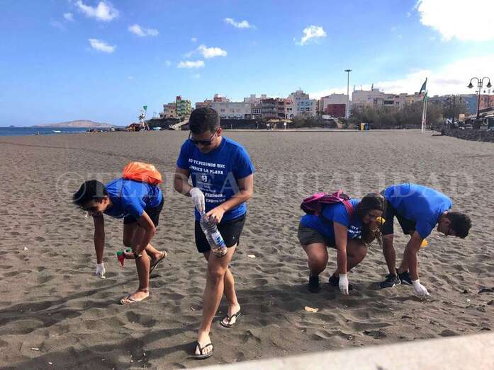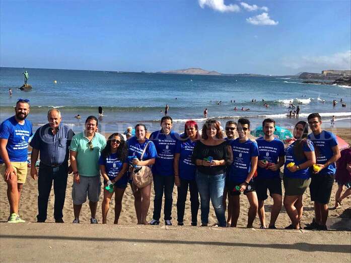 Acompañados por personal municipal y por las concejalas Gloria Cabrera, responsable del departamento de Playas, y Saro Sosa, del área de Participación Ciudadana y Voluntariado, así como del director general de Infraestructura Turística del Gobierno de Canarias, el teldense Héctor Suárez, todos ello miembros de Coalición Canaria, un grupo de voluntarios de la Federación de Colectivos (Fedec) de Telde peinó esta tarde la arena de Salinetas y Melenara.