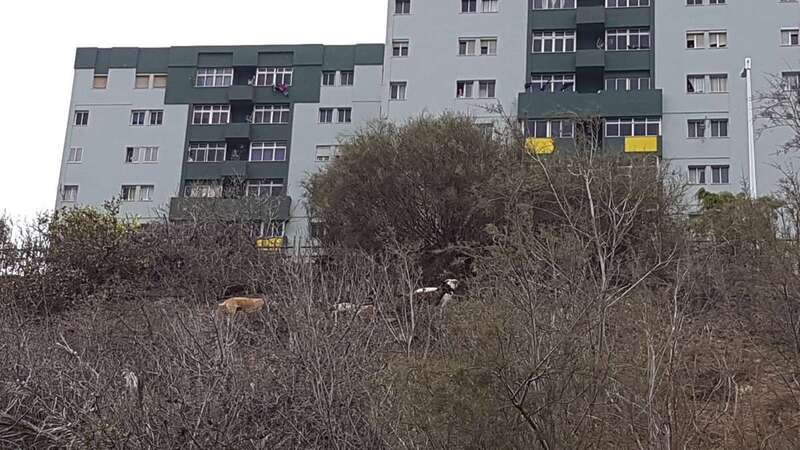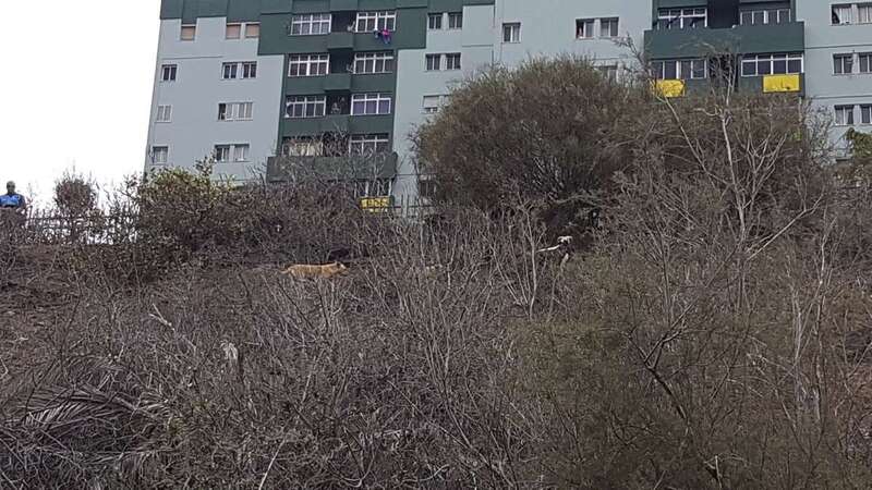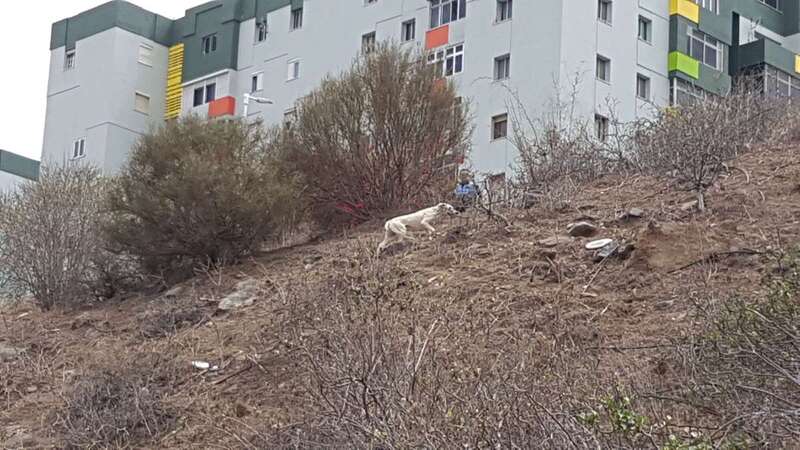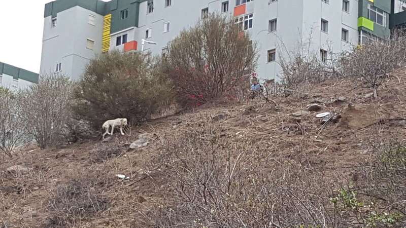 Al poco de recibir el aviso, personal del servicio de recogida de animales del Consistorio teldense y los propios vigilantes del recinto se acercaban a los perros, que se han refugiado en una ladera, para tratar de hacerse con ellos y trasladarlos a un centro especializado.