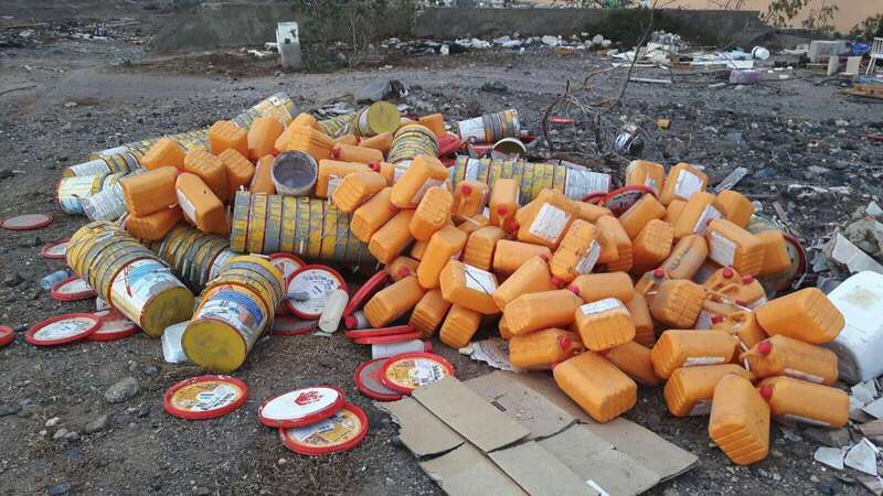 Telde.- Vertido resuelto doblemente. Si hace unas semanas el equipo de la Policía Local de Telde especializado en delitos y faltas contra el medio natural lograba identificar al autor de un vertido de escombros en el cauce del Barranquillo de Salinetas, hace unos días hacía lo propio con los responsables de abandonar, en el mismo lugar, cientos de recipientes de pinturas y disolventes.