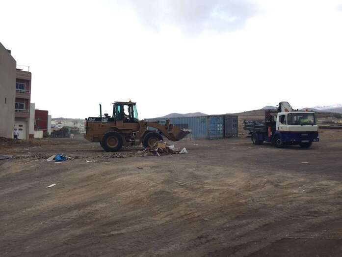 La última de las actuaciones llevadas a cabo ha sido la que este viernes efectuó personal de la Concejalía de Servicios Municipales. Con ayuda de un tractor y un camión, se retiraron cientos de kilos de muebles y restos de obras que se habían acumulado en un solar de la calle Sagunto, en Las Huesas.