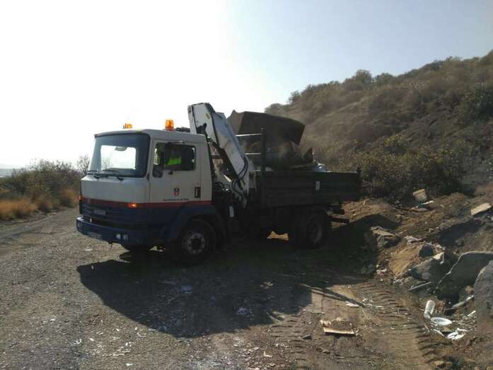 Telde.- En Telde ocurren hechos que no se dan en otros municipios y que deberían llevar a la reflexión a políticos, colectivos y ciudadanos para evitar que sucedan, al menos con tanta frecuencia. El área de Servicios del Ayuntamiento limpió con el concurso de cinco operarios, un camión y un tractor una pequeña escombrera emplazada en el camino rural asfaltado que va a la Sima de Jinámar desde el núcleo poblacional de Caserones Altos.