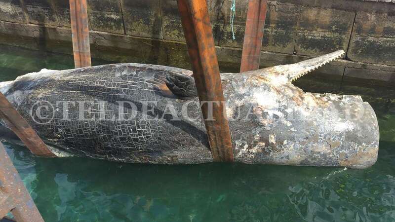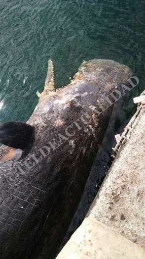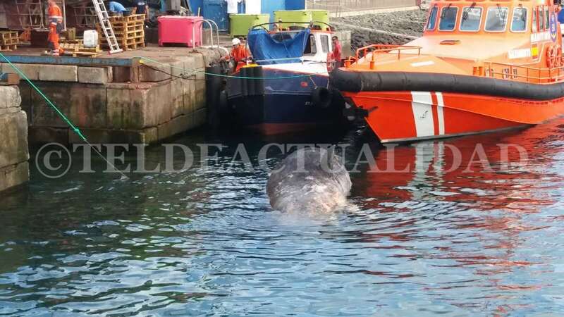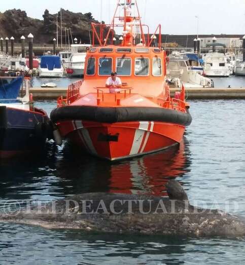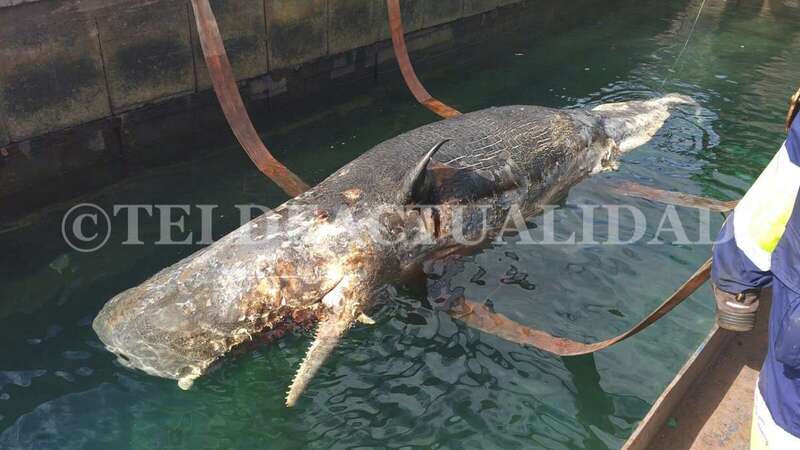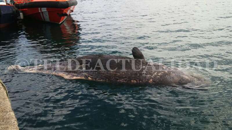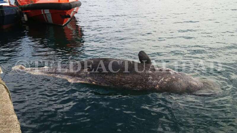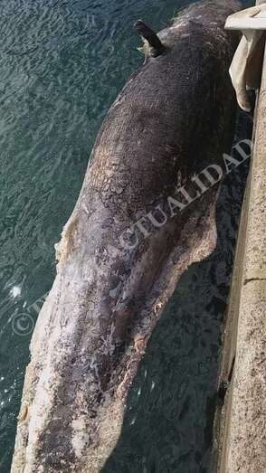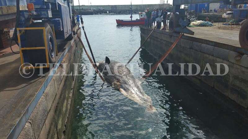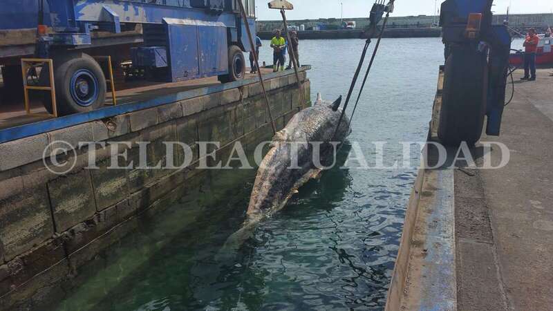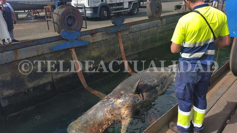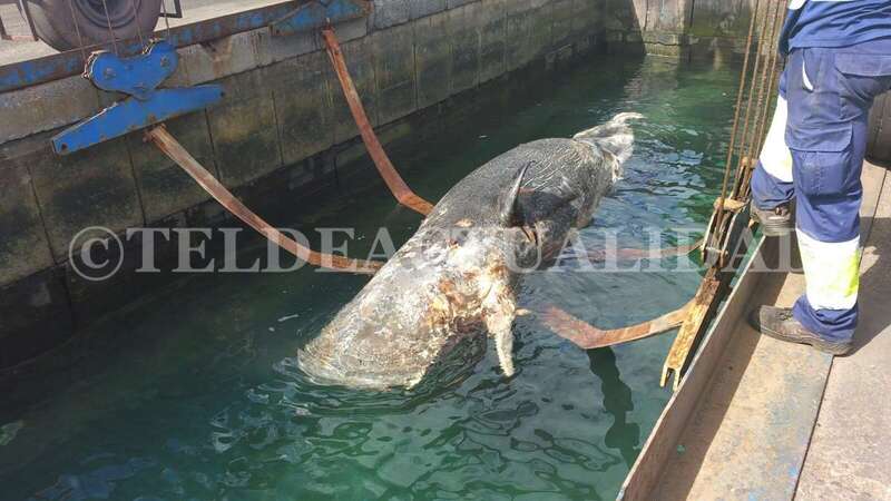 Telde.- Un cachalote de unos doce metros de longitud y seis toneladas de peso apareció muerto en la mañana de este miércoles flotando en la zona de la Punta de Gando. Un embarcación de Salvamento Marítimo (la Salvamar Nunki) consiguió remolcar el cadáver del cetáceo hasta el muelle de Taliarte, en donde en estos momentos se procedió a su izado.