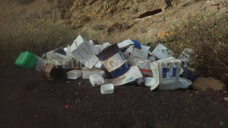 Un vecino teldense que disfrutaba de una ruta en bicicleta por una de sus pistas de tierra advirtió la presencia de un montículo de cajas de cartón, recipientes de plástico y bidones y cubos de aluminio.