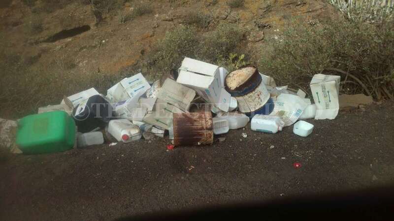 Telde.- Nuevo caso sobre vertidos para la Unidad de Medioambiente de la Policía Local de Telde. Esta vez en el Campo de Volcanes de Rosiana, en donde han aparecido abandonados una serie de recipientes que, en el pasado, contenían productos químicos.