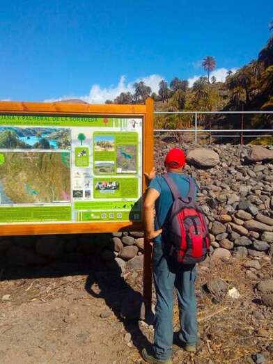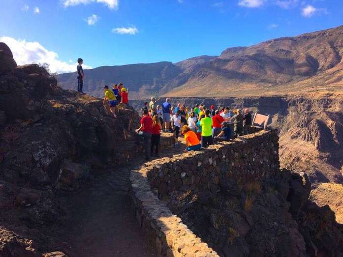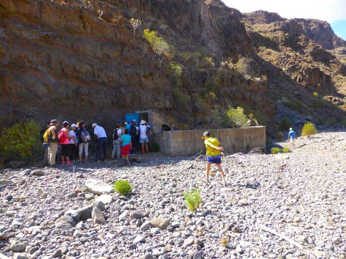 Itinerario acompañado por Juan Bolaños y Jaime González, buenos conocedores y expertos didactas para explicarnos la historia en busca del agua en este barranco. 400 años de historia: Heredad Acequia Alta de Sardina y Aldea Blanca.