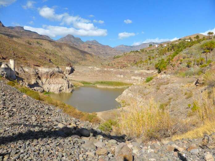 La Presa de Tirajana es una construcción notable que cerró hace más de 40 años la salida de las aguas de la Caldera de Tirajana. Su valor histórico es ostensible: su titular es la Heredad Acequia Alta de Sardina y Aldea Blanca [400 años de vida] y el muro construido es una obra de arte producto de un trabajo histórico de ingenieros de presas que dejaron volar la imaginación para conseguir algo nuevo en Gran Canaria: un espaldón resistente de acarreos del barranco con un núcleo impermeable de arcillas que llega hasta la roca firme del cauce de Tirajana.