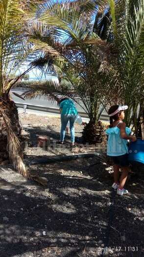 El objetivo de esta protesta, en la que participaron hombres, mujeres y niños, era para llamar la atención al Cabildo de Gran Canaria y Ayuntamiento de Telde sobre el estado de este palmeral, situado entre la autovía GC-1 y la calle de África y próximo al parque infantil de la zona.
