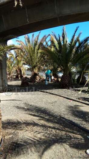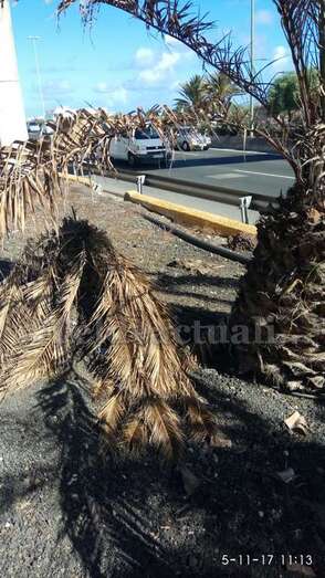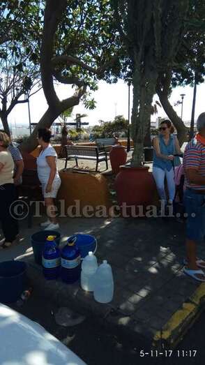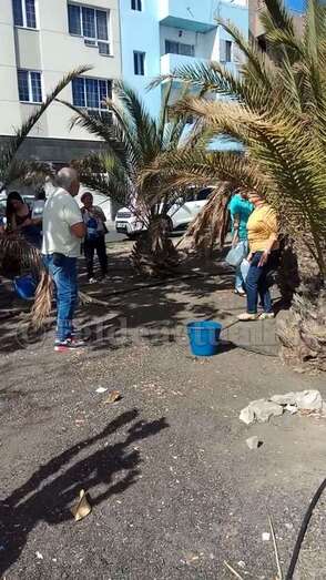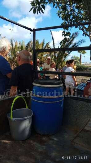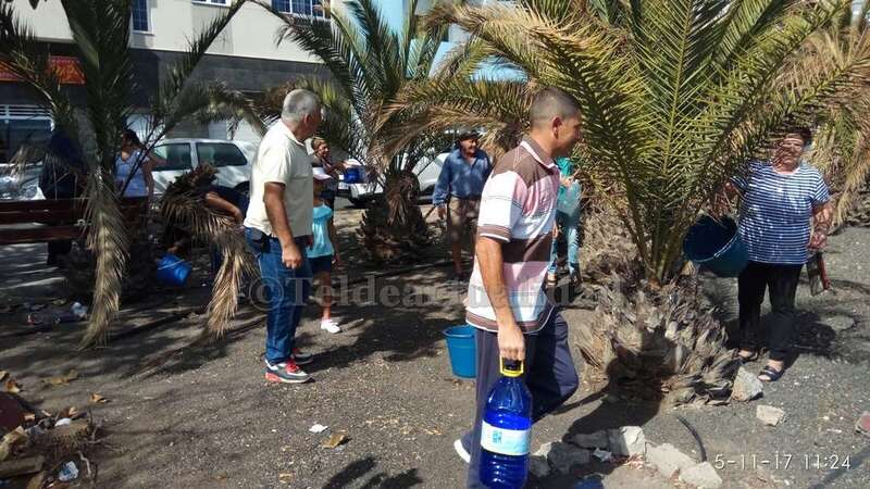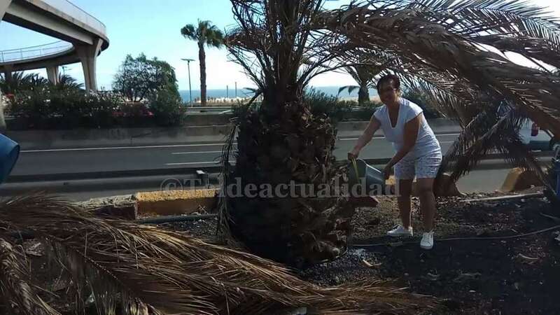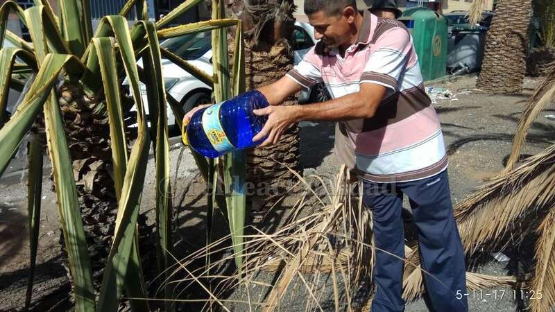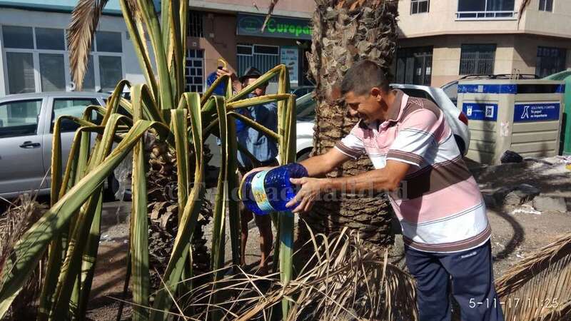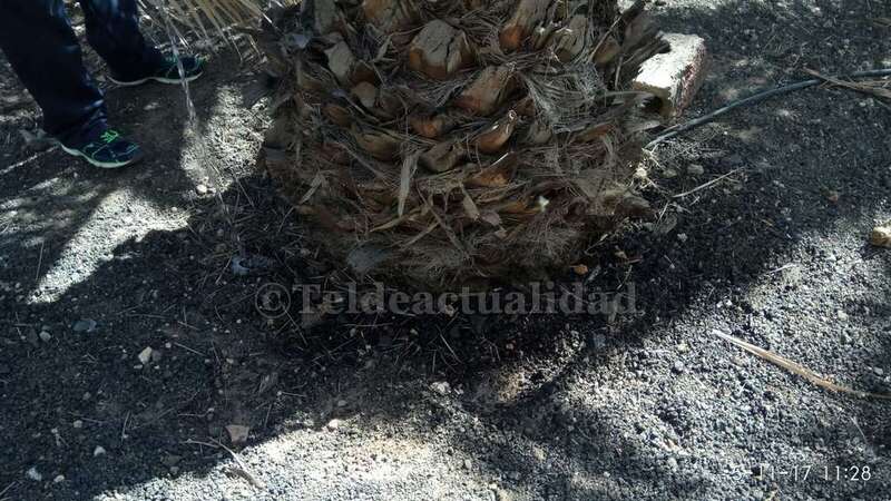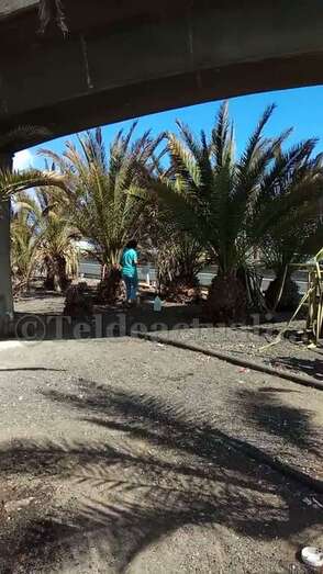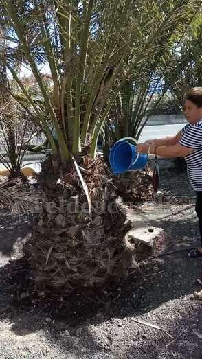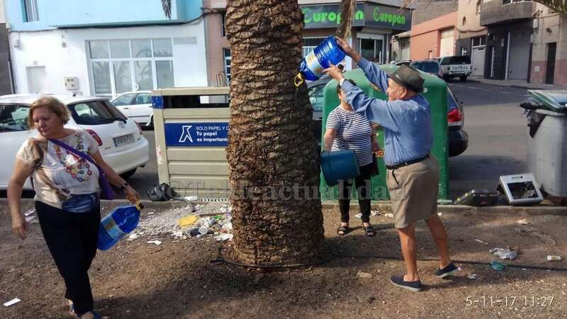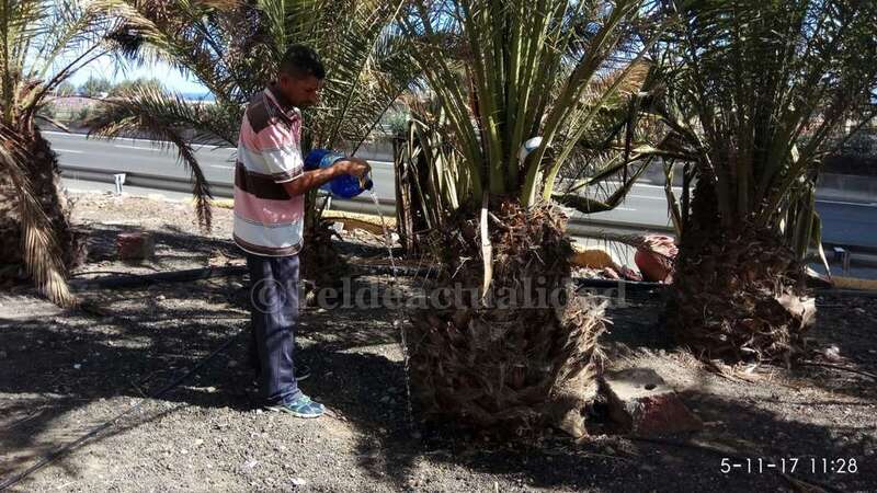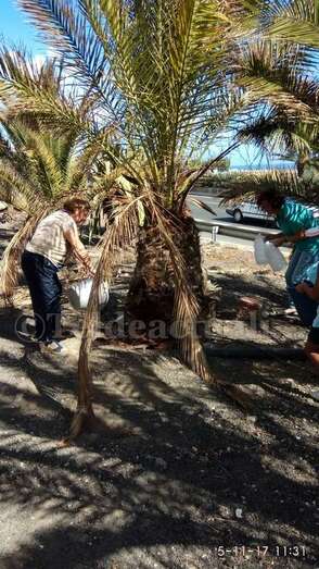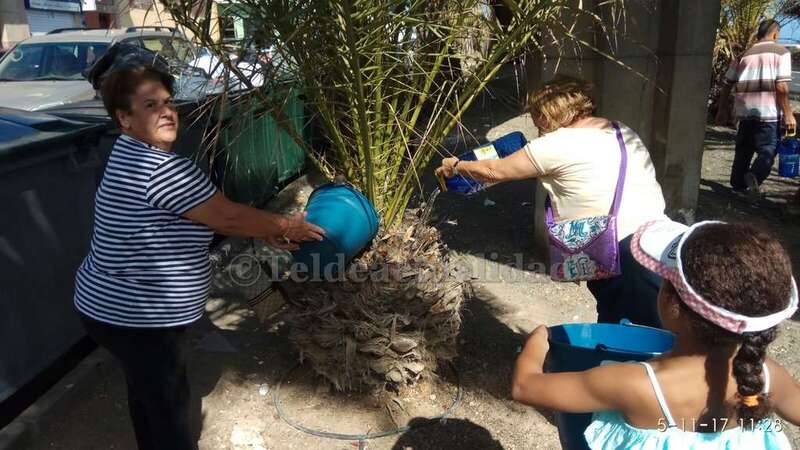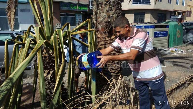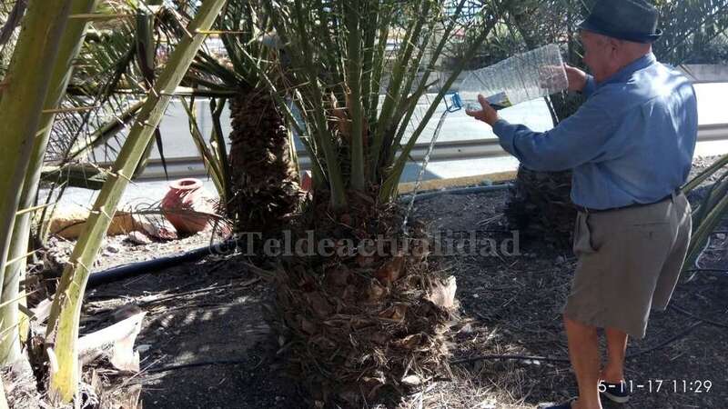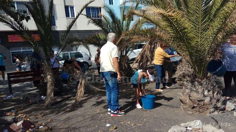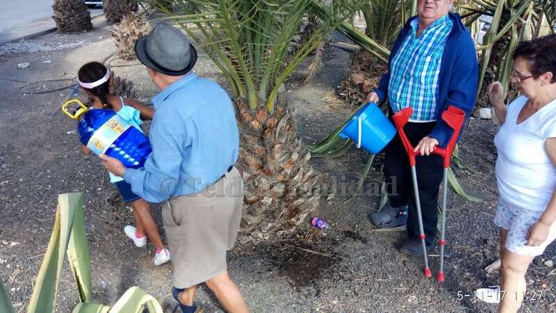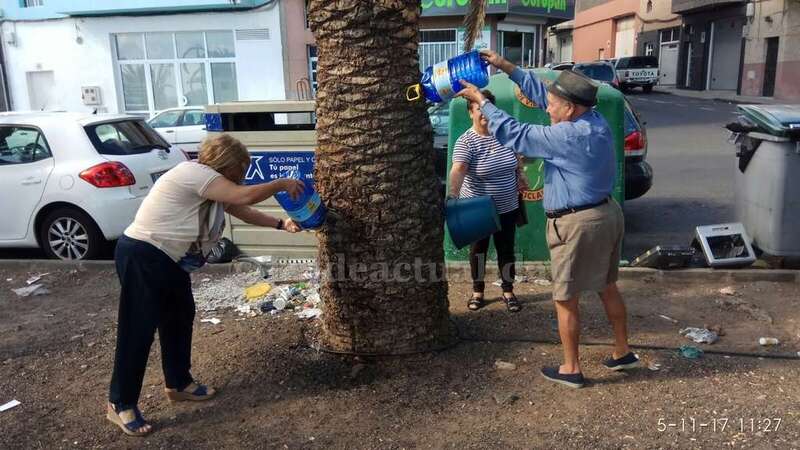Telde.- Pertrechados de baldes y garrafas, un grupo de vecinos de Las Huesas respondió a la protesta ante el estado agónico de muchas palmeras de la GC-1 que bordean el barrio por la falta de riego.